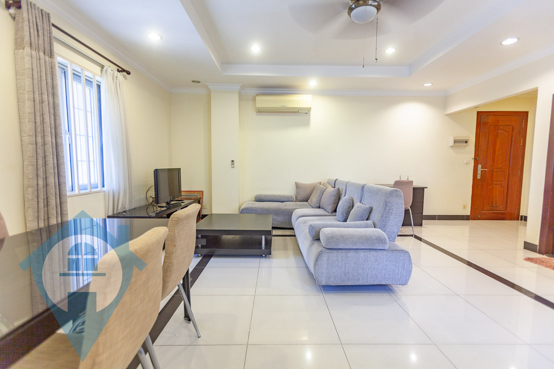 This spacious one bedroom apartment for rent is located close to the landmark Independence monument in the heart of Phnom Penh. The apartment comes fully furnished and fully serviced with one bedroom and two bathrooms plus a private balcony. The building has secure parking for both cars and motos and has a back-up generator. Within close proximity are many local amenities and the area is very popular with expats and locals alike. Please quote property code : PRE001845