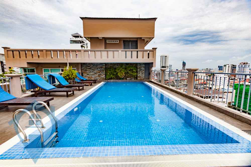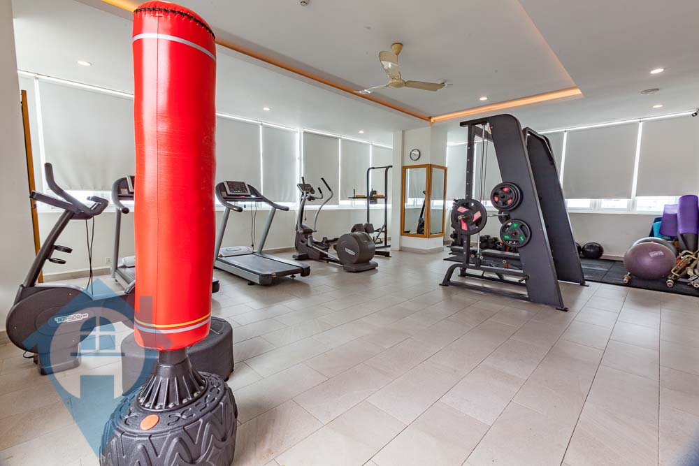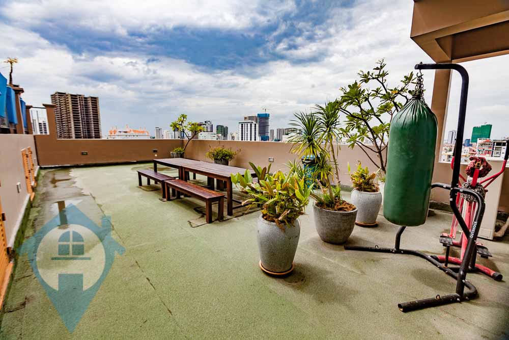 This one bedroom apartment for rent is located in the popular southern district of Tuol Tom Poung in Phnom Penh. The apartment comes fully furnished and fully serviced. This unit comes with one bedroom and one bathroom and a private balcony. The building benefits from a rooftop swimming pool, well equipped gym, rooftop decking area and secure parking for both cars and motos. Please quote property code : PRE002029