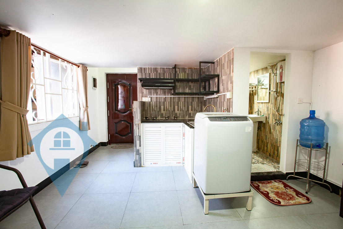 This one bedroom mezzanine apartment for sale is located close to the landmark Wat Phnom in the north of the city. The apartment comes fully equipped and has a downstairs kitchen and living area with the bedroom above. This property is on the 2nd floor and communal parking is within easy walking distance. This property for a soft title. Please quote property code : PRE001419