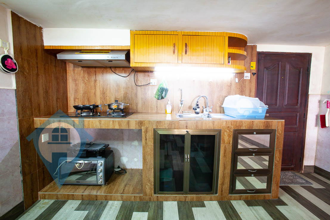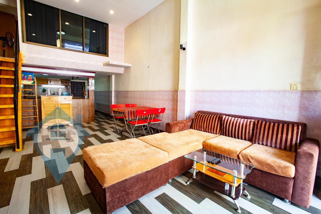 This one bedroom apartment for sale is located close to the landmark Kandel market in Phnom Penh. The apartment has two bathrooms and one bedroom and comes fully furnished and equipped. The bedroom is on a mezzanine level and there is a private balcony off the living area. This property is on the 2nd floor and communal parking is close by. This property has a soft title. Please quote property code : PRE001420