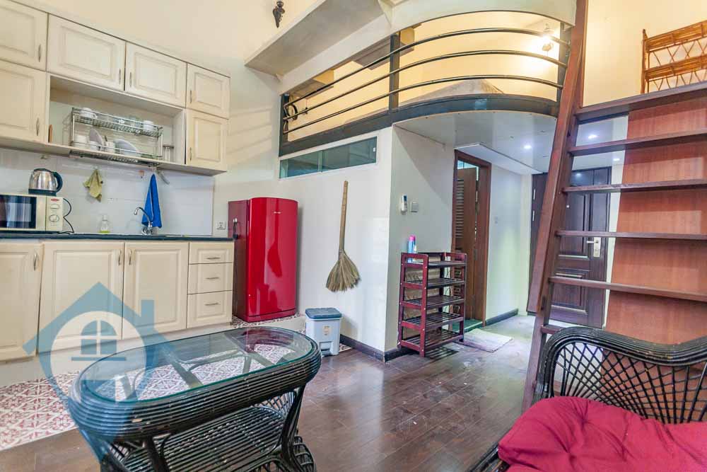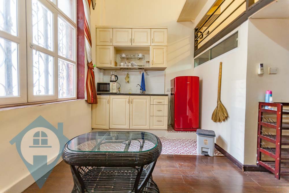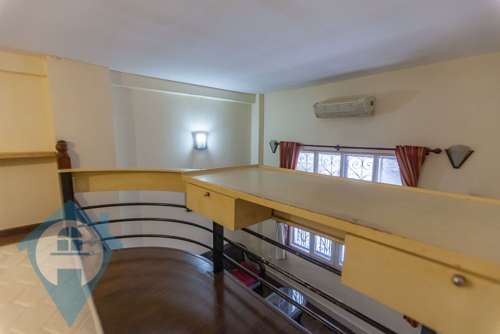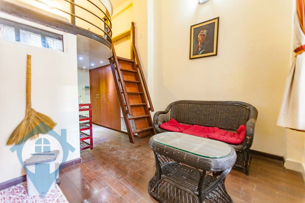This 1st floor apartment for rent is located on the famous Sisowath quay in Daun Penh district of Phnom Penh. The apartment is accessed straight from riverside and has a secure open entrance. The apartment comes fully furnished and has a mezzanine bedroom and a high ceiling in the living area. Parking for motos is available close by. The electric and water are at Khmer normal rates. Please quote property code : PRRE001898