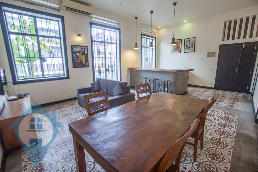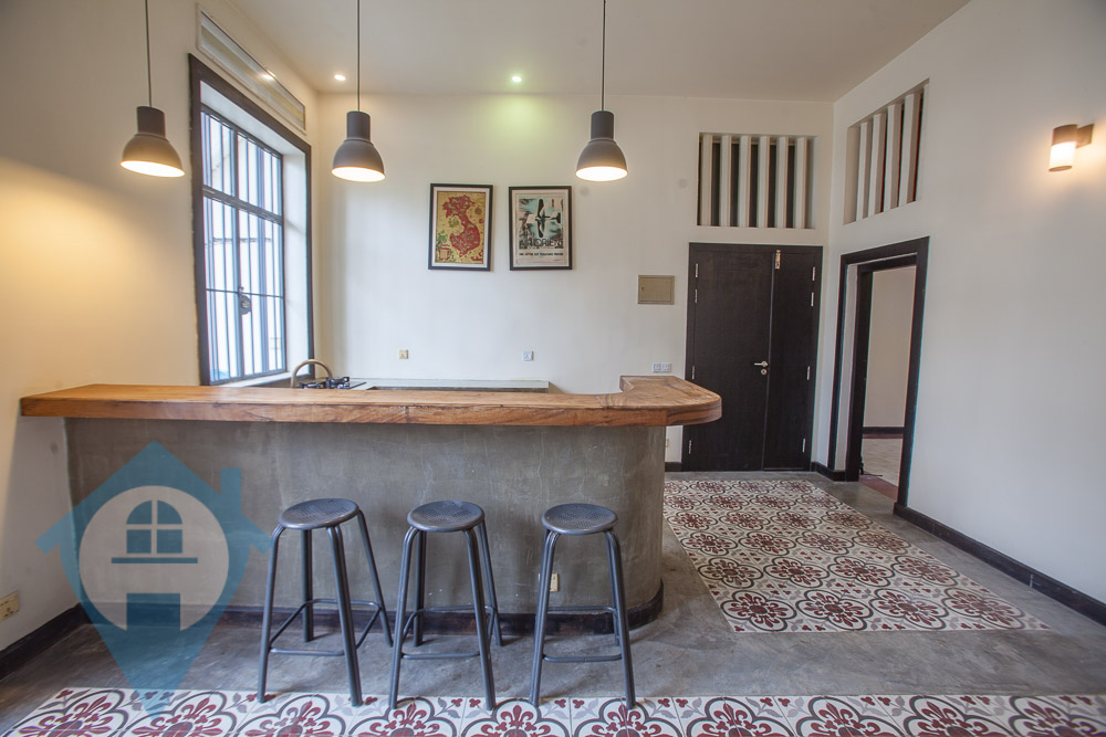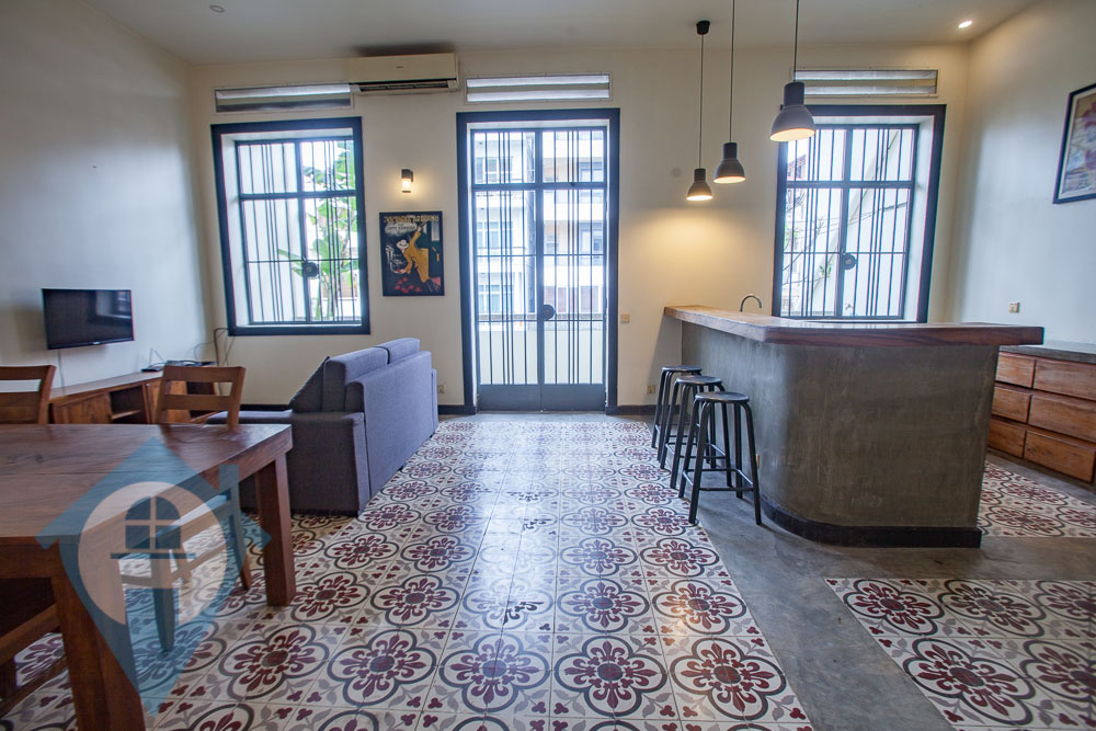 This two bedroom French colonial style apartment for rent is located in the heart of the popular Wat Phnom district in northern Phnom Penh. The apartment is on the second floor and comes with two bedroom, two bathrooms and a mezzanine floor for storage or a guest bedroom. The apartment have a private balcony off the living room plus a rooftop terrace. The entrance is clean and tidy. This property is close to the US, UK & French embassies plus the French international school – Lycée Français René Descartes of Phnom Penh Please quote property code : PRE002205 For more info and viewings contact Bobby – WhatsApp / Telegram +85577424840