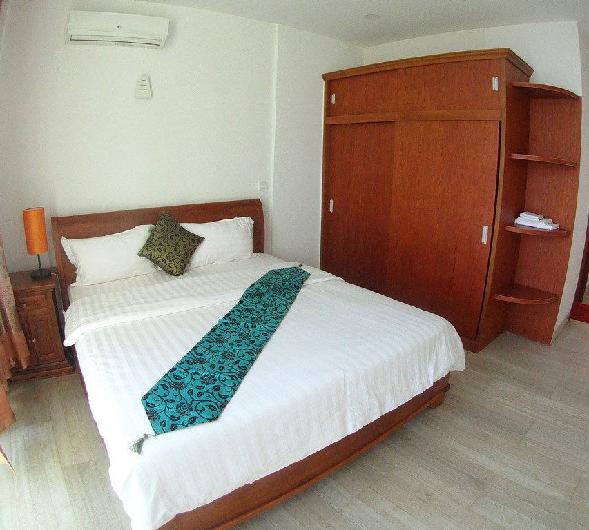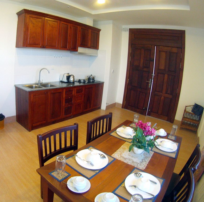 Exceptional view, in a quiet and safe area, this apartment of 130 sqm, offers a very large living dining area space, bay window and many windows in the room, 2 bedrooms with private bathroom and large wardrobe. Located over the Japanese bridge, 10 minutes from wat phnom, the French school and Riverside, the apartment is very bright and cool with the wind comes from the rivers Fully furnished with an open kitchen : fridge and freezer, gas burner and oven, kitchen extractor, washing machine, kitchen wares, dishes, sheets, towels, ….. air con in every rooms and tv The monthly rent included wifi, cable tv, car park, security 24 hours a day Please mention the code N° 353 Contact by email : English or French Contact by phone : English or French or khmer