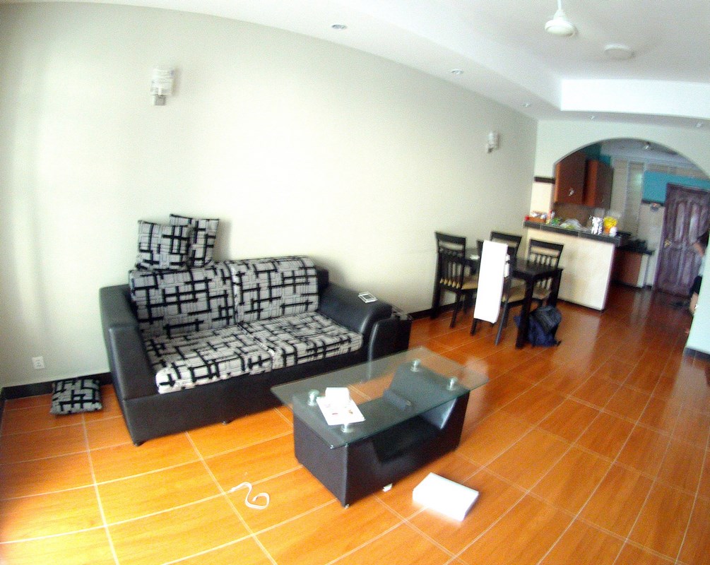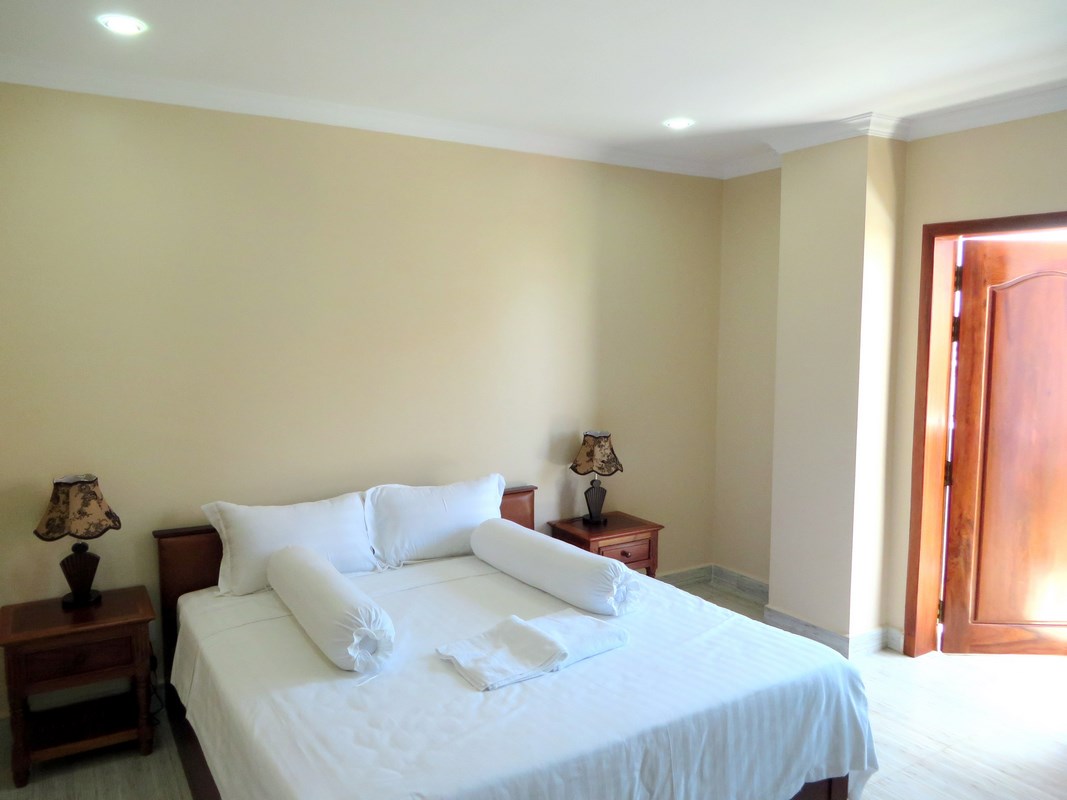 Good value for money, located on the 2nd floor, this apartment of 75m2 is fully equipped. Lighted by a nice balcony, the big living room homes a dining room and a beautiful open space kitchen equipped with numerous cupboards. Each of the two bedrooms (with air conditioning) has a nice Western-style bathroom. A garage offers possibility to park car or motorbike. Please mention code N° 415 Contact by email : English or French Contact by sms : English or French or khmer