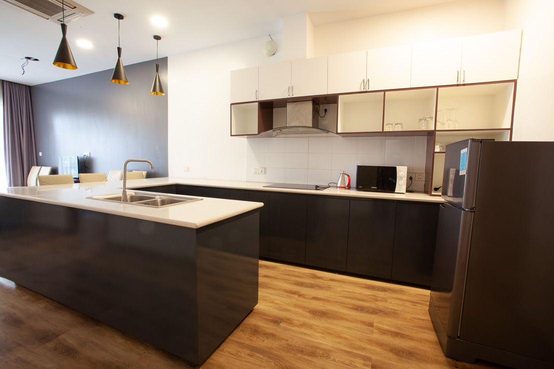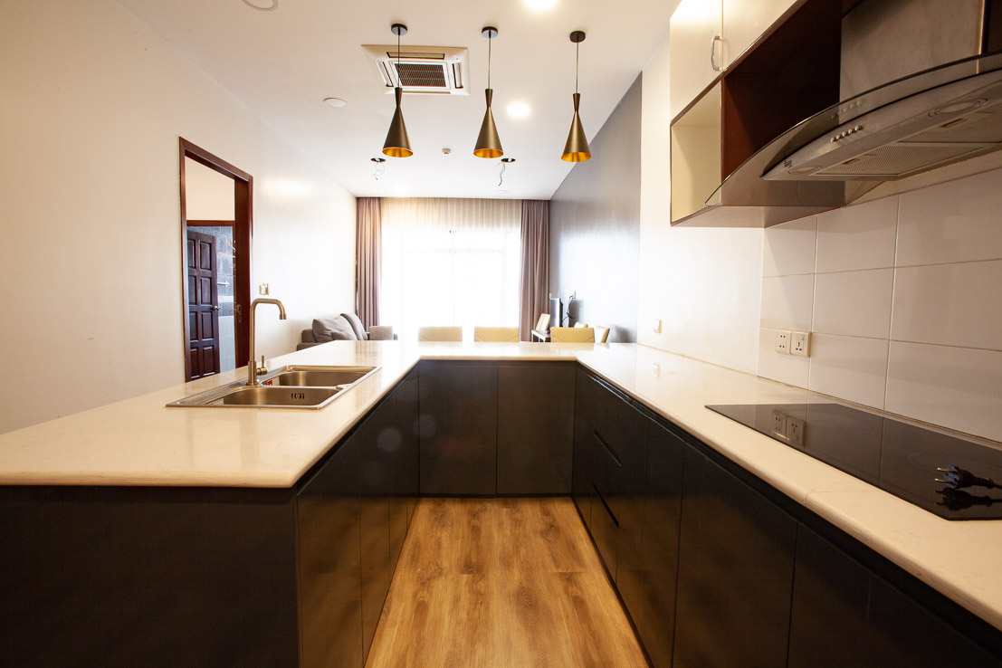 This two bedroom apartment for rent is located in the heart of Wat Phnom close to René Descartes French school in Phnom Penh. The apartment comes with two bedrooms and two bathrooms. There are two private balconies and the property comes fully furnished. The building comes with security and secure parking. Please quote property code : PRE001636