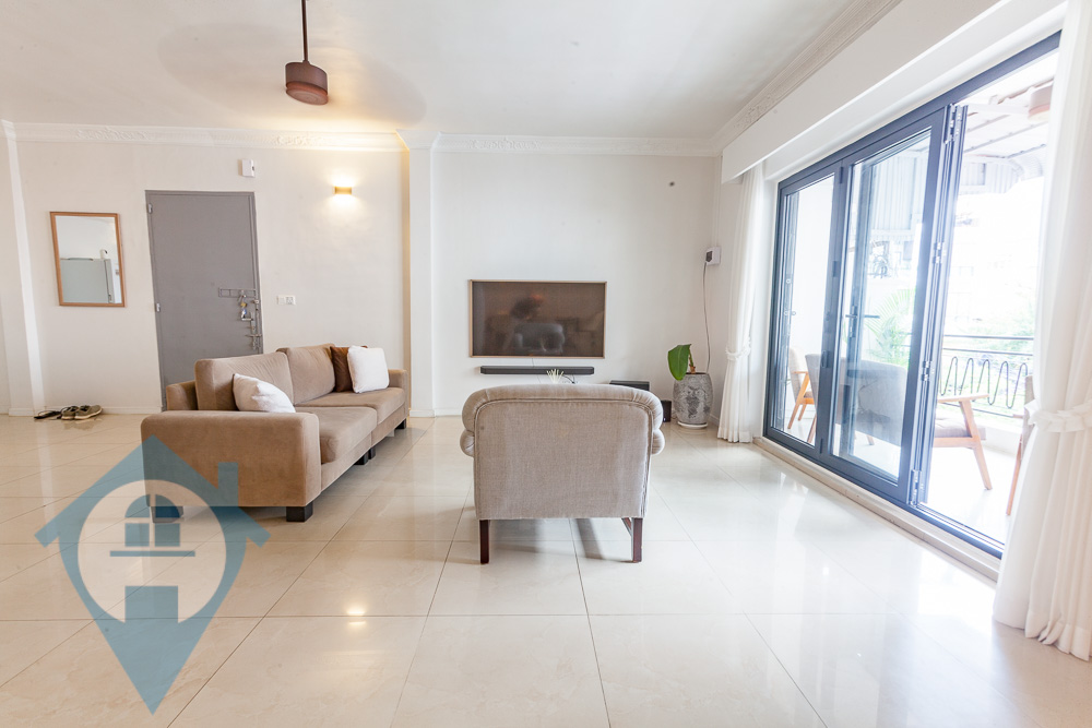 This two bedroom apartment for rent is located beside the landmark Central Market in the Daun Penh district of Phnom Penh. The apartment is accessed via a communal stairwell and is on the second floor. The property comes with two good sized bedrooms and one bathroom plus a guest WC with a shower. The main living area is spacious and leads to a private balcony looking towards the market. There is communal parking for motos close by. This apartment is close to the French school Lycée Français René Descartes and Vatannac tower. Please quote property code : PRE002047