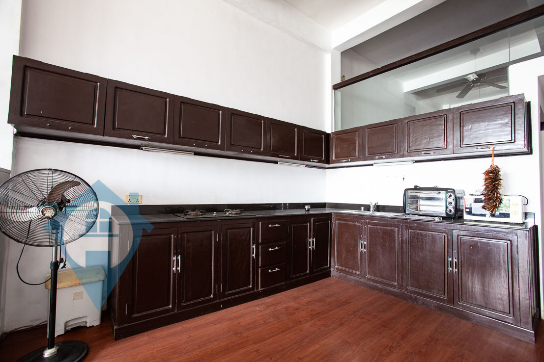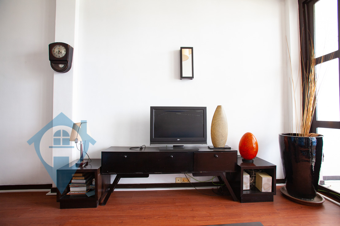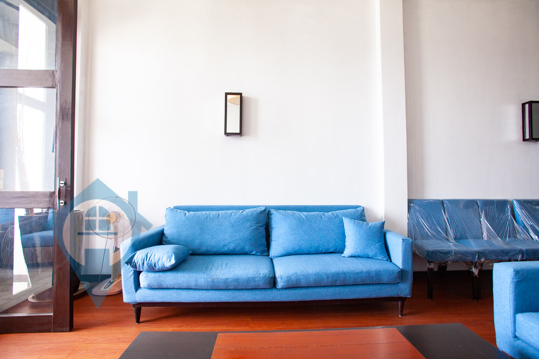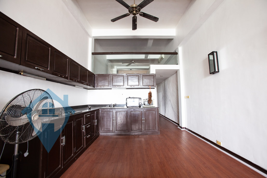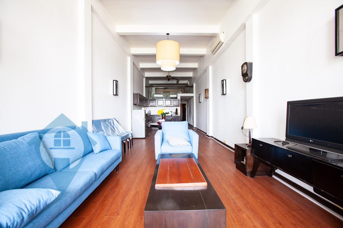 This two bedroom apartment for rent is located on the famous riverside in central Phnom Penh. The apartment has a good sized main bedroom and a smaller second bedroom on the mezzanine. The apartment benefits from high ceilings and a private terrace overlooking the Tonle Sap river. The entrance is shared and the apartment is on the second floor. Communal parking for both cars and motos is available close by. Please quote property code : PRE001491