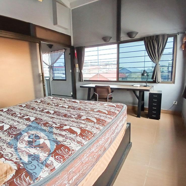 This two bedroom apartment for rent is located on street 144 in the Phsar Kandal Ti Muoy district near Riverside. The apartment comes fully furnished in an industrial style and has two bedrooms and one bathroom. The property is accessed via a communal stairwell and parking for moto's is close by. There is an option to rent an additional floor above for $150 per month ( photos upon request ) This property is on the 5th floor and water and electric are at government rates. Please quote property code : PRE002077