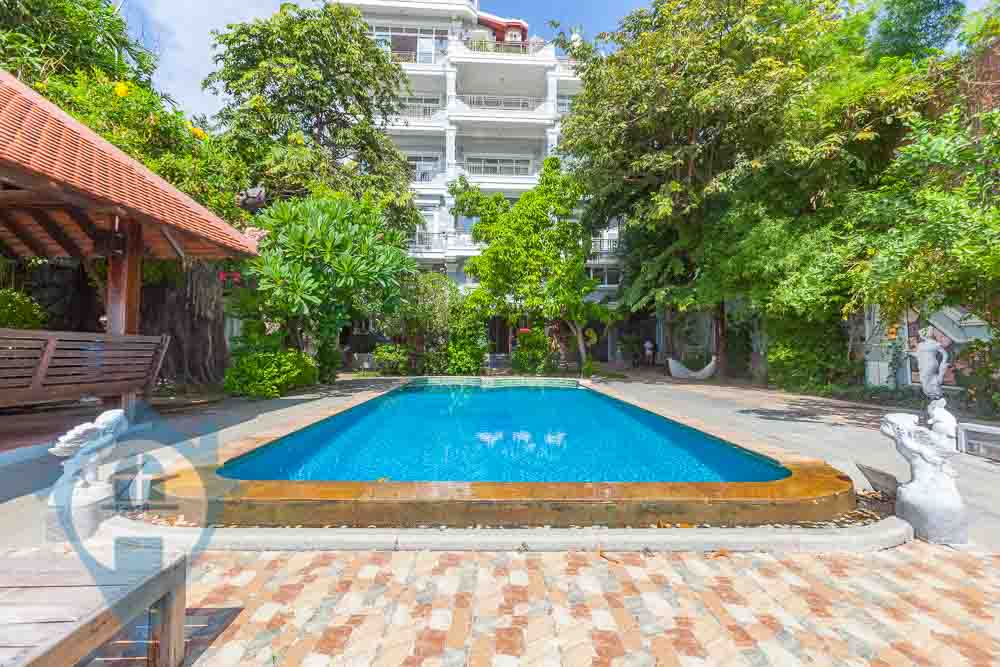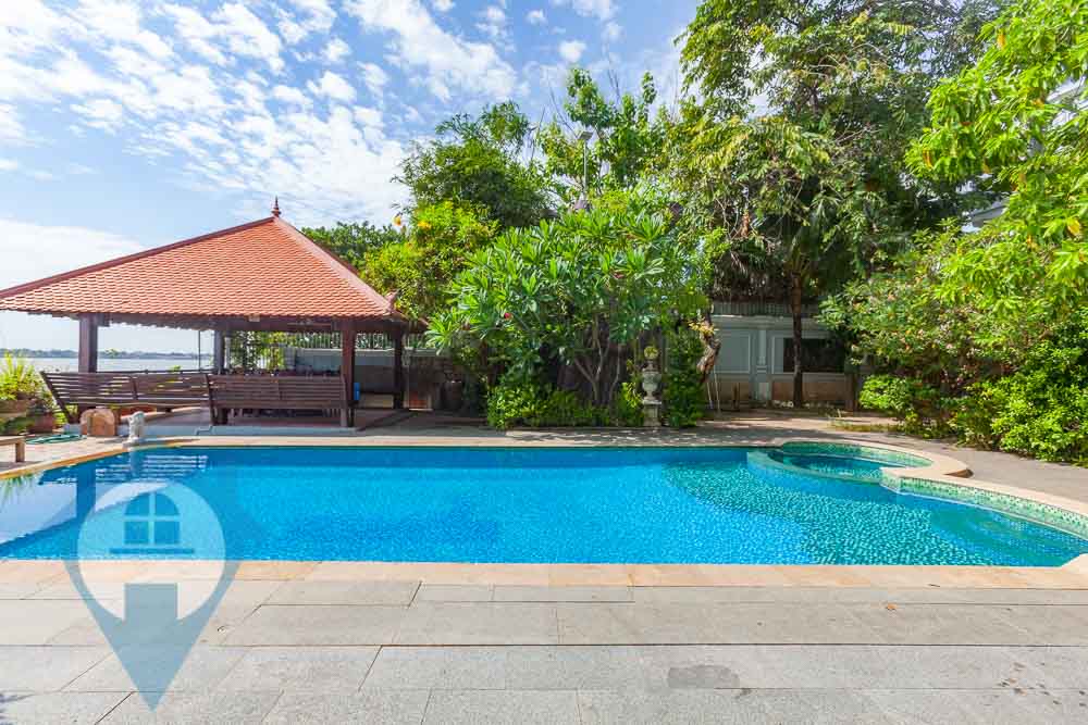 This two bedroom apartment for rent is located on a peaceful stretch of the Mekong close to the Japanese bridge in Chroy Chungva in Phnom Penh. The apartment comes with two bedrooms and one bathroom and comes fully furnished and fully serviced. There is a private balcony facing the Mekong with stunning panoramic views towards the river. The building benefits from secure parking for cars and motos, a mature garden and ground floor swimming pool, gazebo for dining, rooftop gym and kitchen leading onto a large terrace with spectacular views. Please quote property code : PRE001864