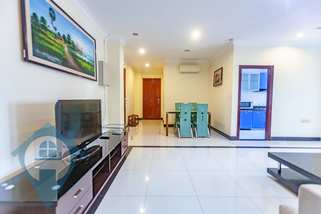 This spacious two bedroom apartment for rent is located close to the landmark Independence monument in the heart of Phnom Penh. The apartment comes fully furnished and fully serviced with two bedrooms and three bathrooms plus a private balcony and storage room. The building has secure parking for both cars and motos and has a back-up generator. Within close proximity are many local amenities and the area is very popular with expats and locals alike. Please quote property code : PRE001845