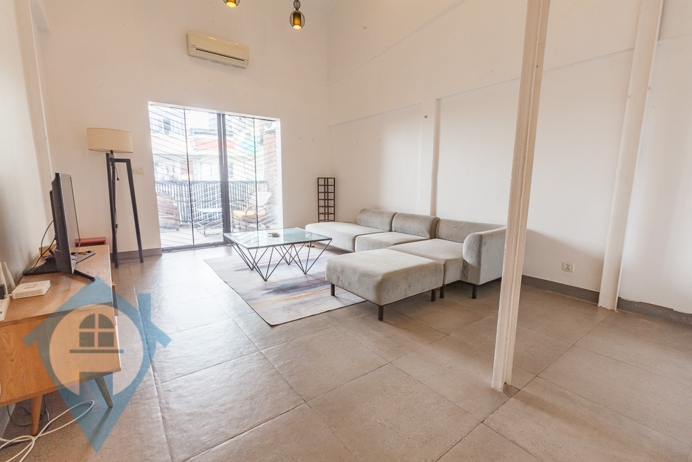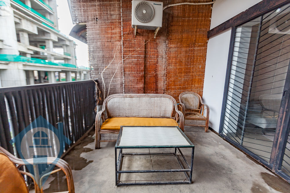 This spacious duplex apartment spans 140 square meters and is ideal for a two-bedroom unit, complete with a terrace and mezzanine. Fully furnished, it features a comprehensive lounge set with an L-shaped sofa, a coffee table, a flatscreen TV, and air conditioning. The galley kitchen includes a built-in stove, exhaust hood, sink, and cabinetry, while the dining hall provides ample space for additional cabinets or large furnishings if needed. Both bedrooms are equipped with queen-sized beds, AC, utility shelves, dressers, and large windows to ensure airflow and natural light. The apartment boasts three bathrooms—two en suite and one common-access. It offers various relaxing spots, whether enjoying a home-cooked meal, lounging on the sofa, or feeling the breeze on the terrace. Centrally located in Phsar Chas, Phnom Penh, it is a short walk from the Preah Ang Duong Hospital, Central Market, and Sorya Shopping Center. It is also conveniently three minutes from Olympia Mall and Norton University, seven minutes from Aeon Mall, and ten minutes from the Royal University of Phnom Penh. With two bedrooms and three bathrooms all situated on the upper level, a generous terrace measuring 3m by 4m, a good entrance way, high ceilings, and a soft title, this apartment provides an ideal living space. Please quote property code : PRE002049