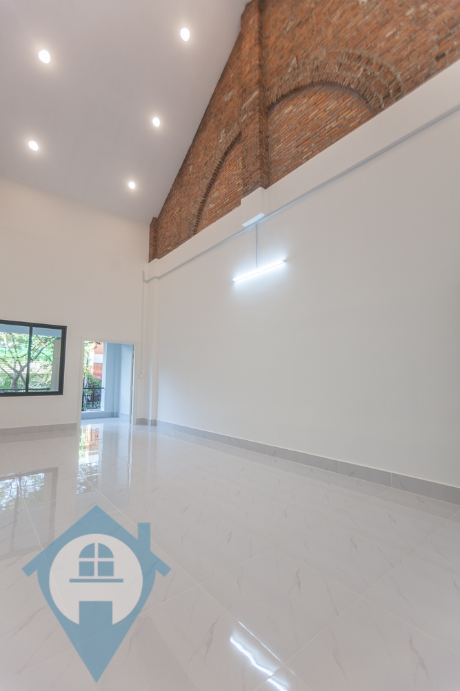 This two bedroom apartment for rent in located on the popular street 240 in the Daun Penh district close to the Royal Palace in Phnom Penh. The apartment is on the 1st and 2nd floor and comes with two bedrooms and two bathrooms and a private terrace. The property is unfurnished and has the potential to be used both as a residential home but also as an office. The main room has exposed brick and a high ceiling with lots of natural light. Please quote property code : PRE002060