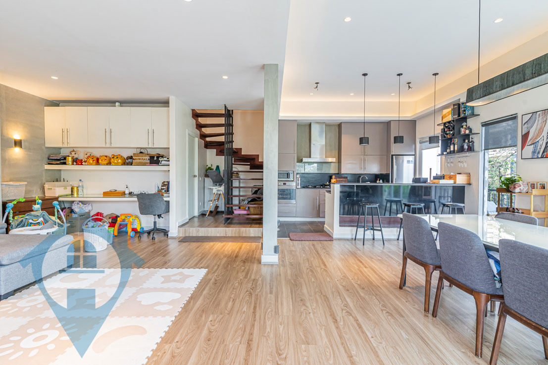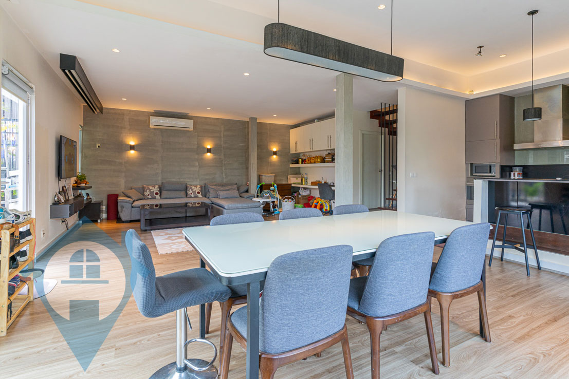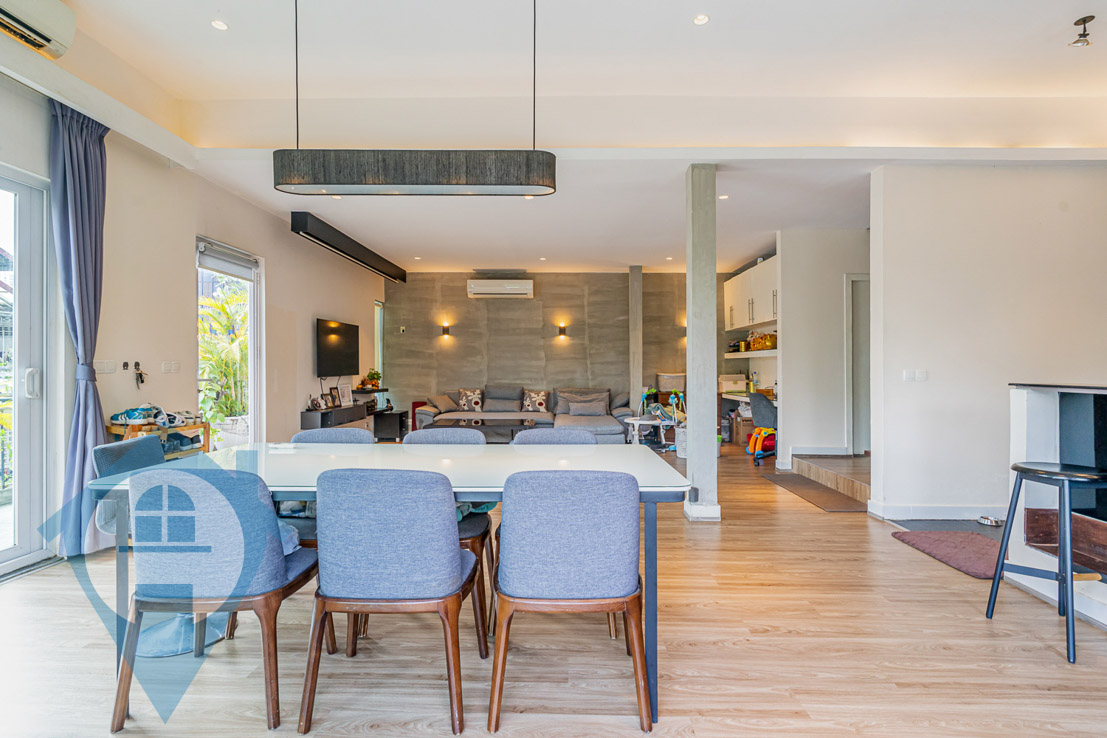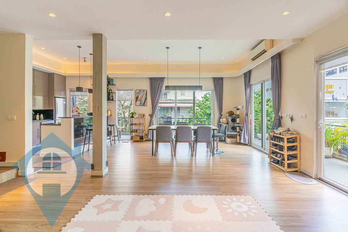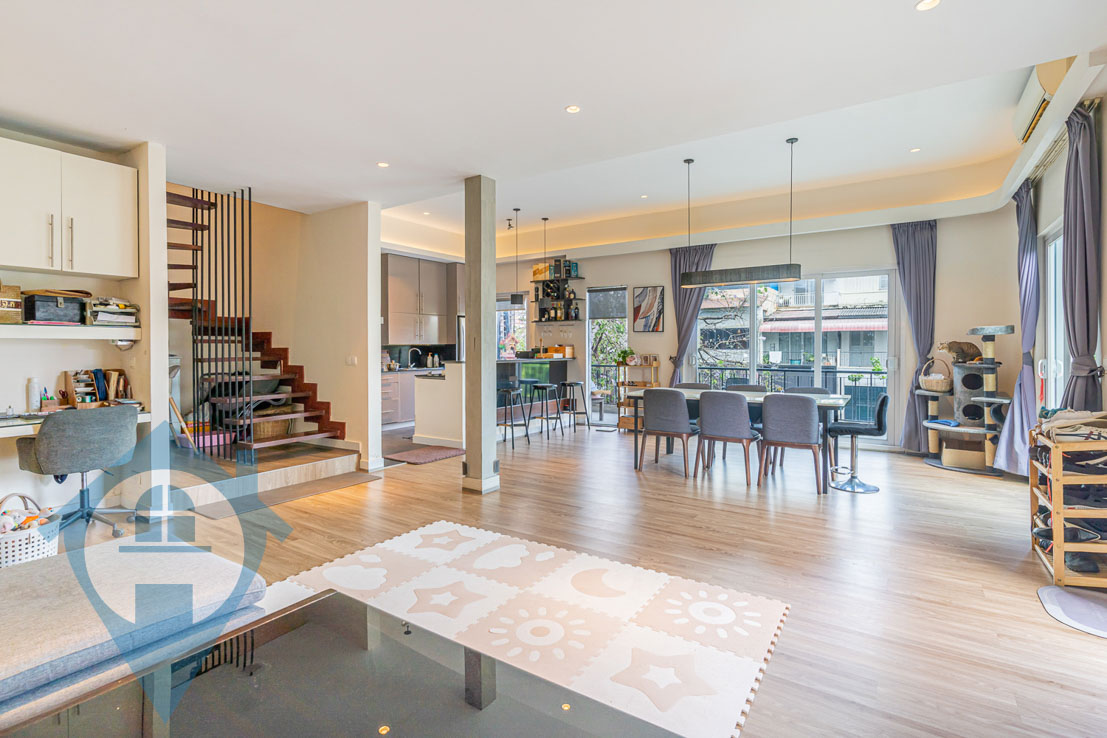 Nestled in the vibrant center of BKK1, this exquisite two-bedroom duplex apartment presents a unique opportunity, having been completed in late 2015. Its distinctive presence in BKK1 makes it an exceptional find. Spanning 157 sqm, this property boasts a modern, open-concept kitchen along with a spacious dining and living area on the second floor, while the third floor houses two generously sized bedrooms. The apartment is delivered fully furnished, equipped with a high-end kitchen, contemporary bathrooms, a large LCD TV, a projector, and a private balcony that offers views of street 63. This fully-furnished property stands out as a truly remarkable offering. Please quote property code : PRE001960