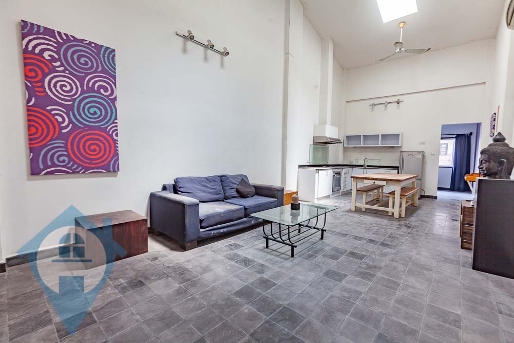 This impressive apartment situated on the 2nd floor, features 2 bedrooms, which can alternatively serve as a 1 bedroom and 1 office space, has recently undergone renovations and is in a prime Riverside location. The moment you step inside, you’ll be greeted by a vast space that uniquely blends the contemporary needs of an urban dweller. The apartment enjoys direct street access and is situated less than a block away from the riverfront, adding to its allure. It boasts an expansive open-plan layout for the kitchen, dining, and living areas, complemented by high ceilings that offer the potential for adding a mezzanine floor. Unlike many, this property doesn’t have any units above it, ensuring a level of privacy and exclusivity. Modern conveniences have not been overlooked, with the inclusion of western standard electrical and plumbing systems, air conditioning, ceiling fans, and hot water. The fully equipped western kitchen comes with a fridge and oven, alongside a washing machine, making daily living both comfortable and convenient. Please quote property code : PRE001967