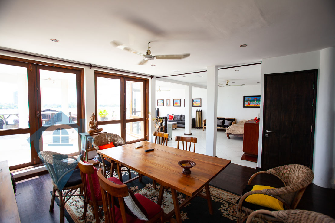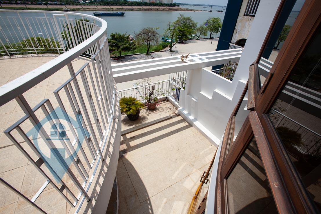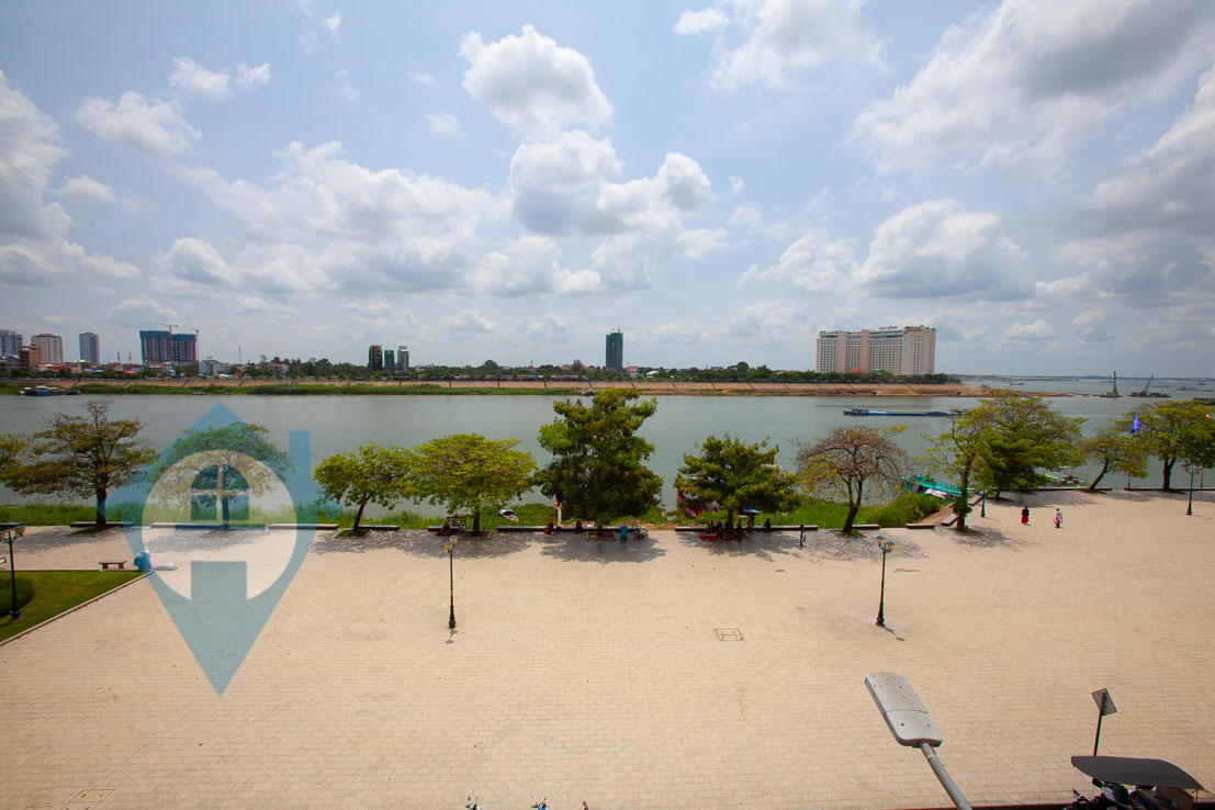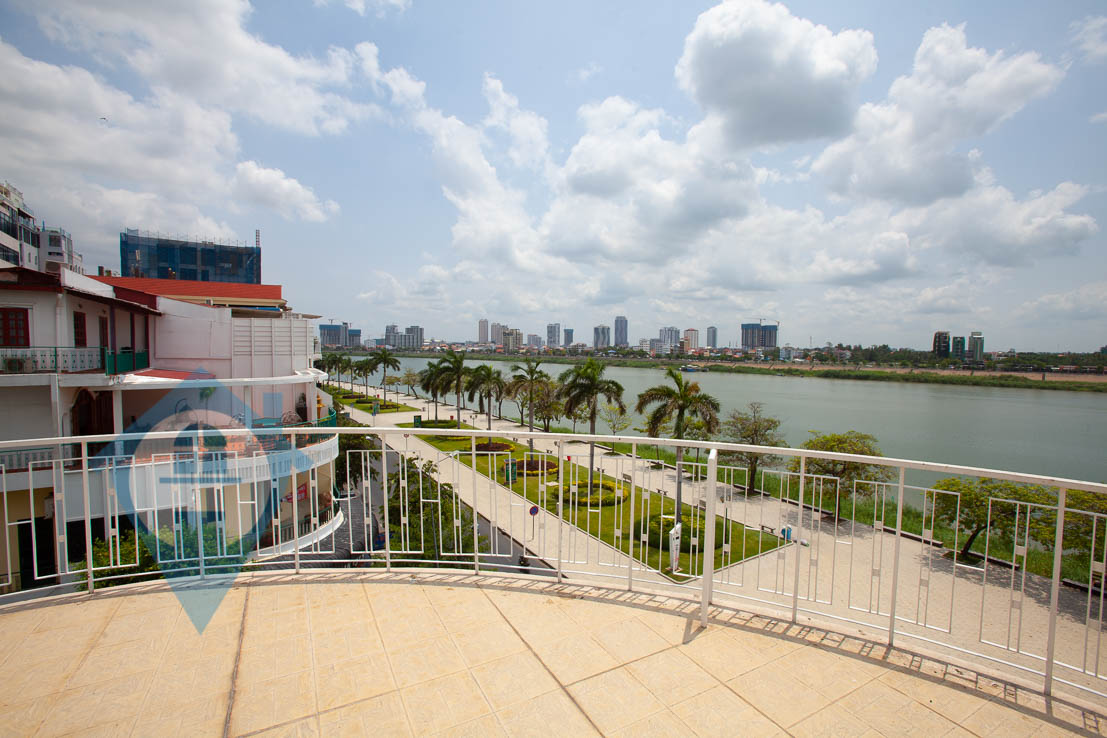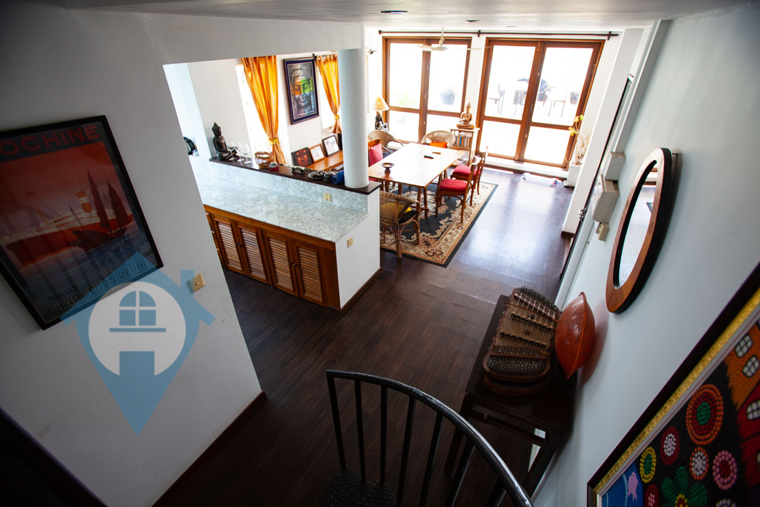 This two bedroom riverside duplex for sale is located on the iconic Riverside in central Phnom Penh. The apartment has two bedrooms and two bathrooms spread over the second and third floors. The property comes fully furnished and fitted and has lots of natural light giving a bright and airy feeling. The duplex benefits from various private terraces with panoramic views over the Tonle Sap river towards the Mekong. The property comes with wooden floorboards floor-to-ceiling blinds in the master bedroom. Entrance is via a shared secure stairwell and parking for cars and motos is available close by. This apartment has a hard title. Please quote property code : PRE001490