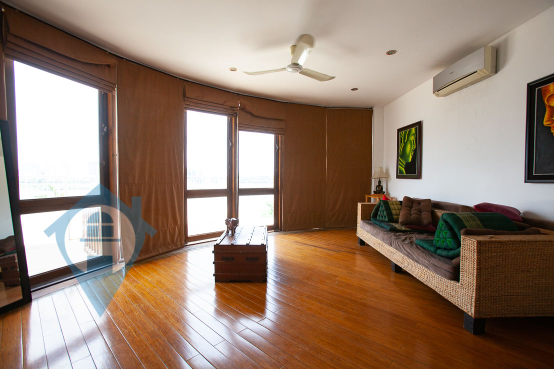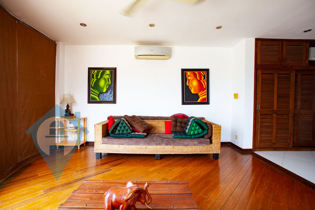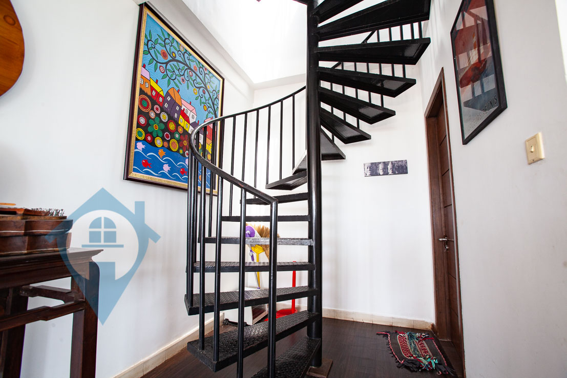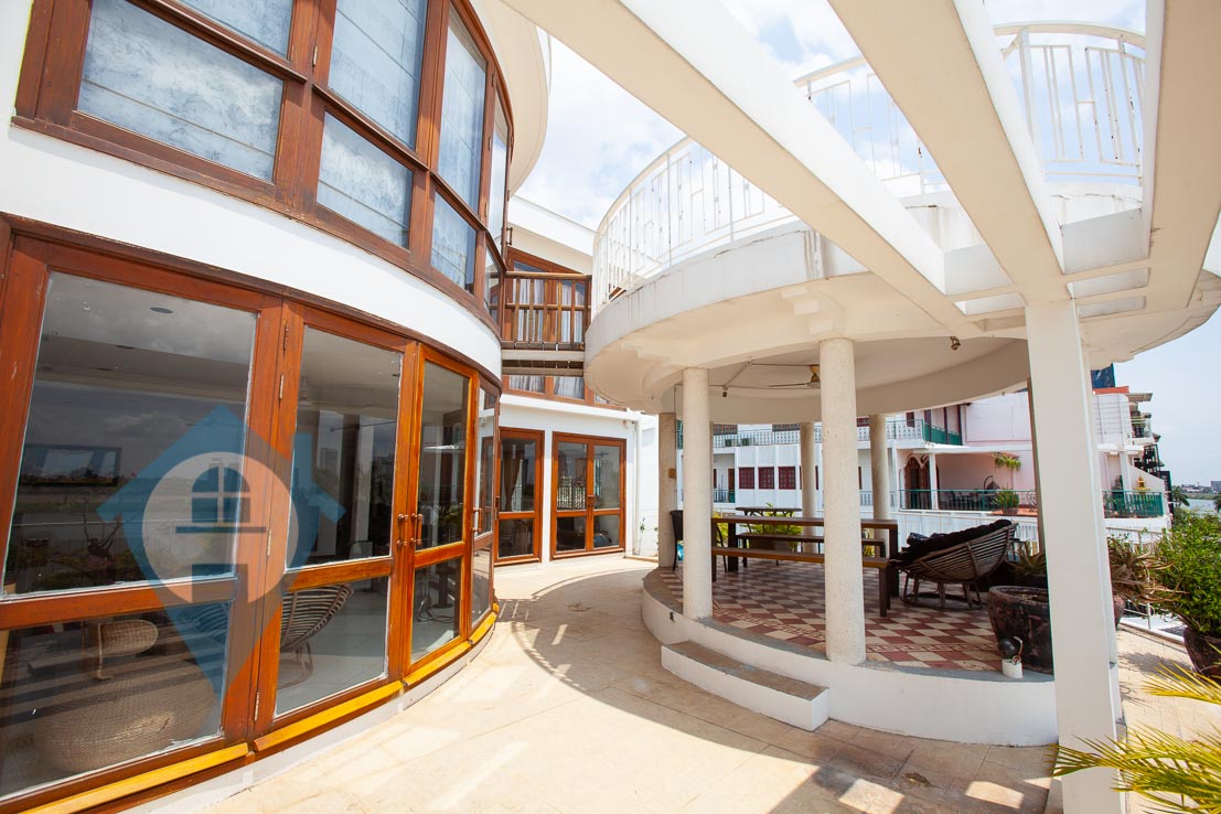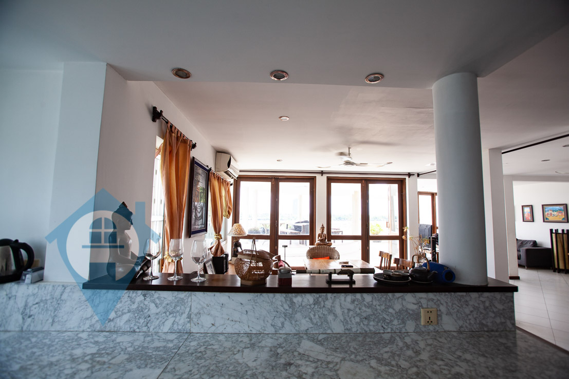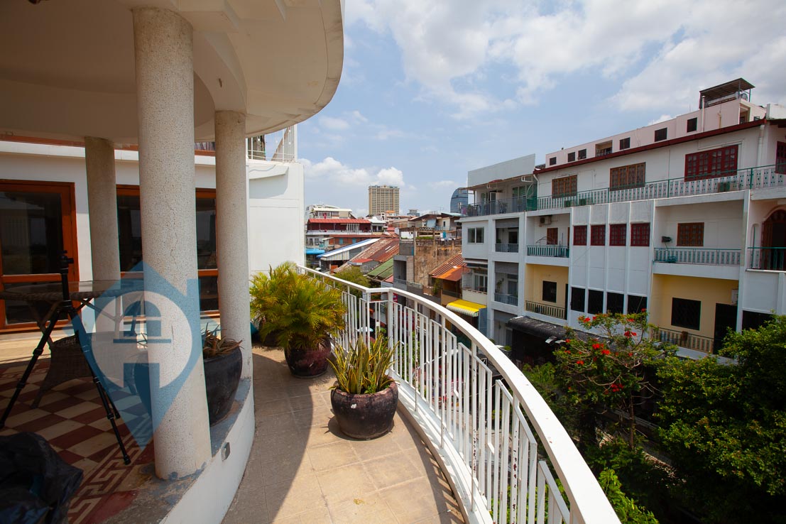 This two bedroom riverside duplex for sale is located on the iconic Riverside in central Phnom Penh. The apartment has two bedrooms and two bathrooms spread over the second and third floors. The property comes fully furnished and fitted and has lots of natural light giving a bright and airy feeling. The duplex benefits from various private terraces with panoramic views over the Tonle Sap river towards the Mekong. The property comes with wooden floorboards floor-to-ceiling blinds in the master bedroom. Entrance is via a shared secure stairwell and parking for cars and motos is available close by. This apartment has a hard title. Please quote property code : PRE001490