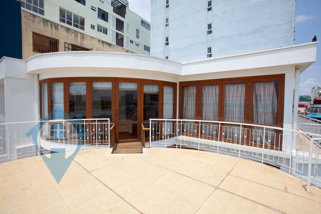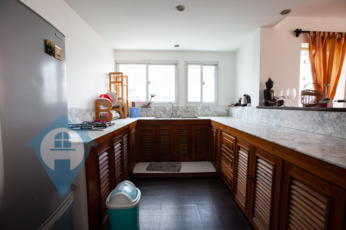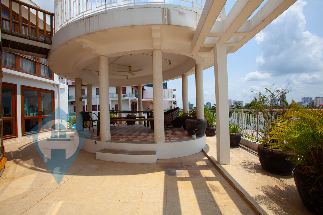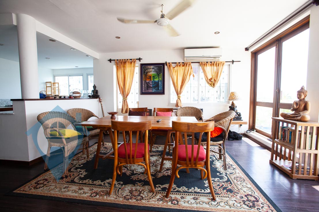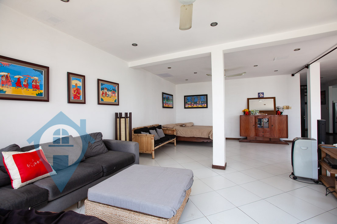 This two bedroom riverside duplex for sale is located on the iconic Riverside in central Phnom Penh. The apartment has two bedrooms and two bathrooms spread over the second and third floors. The property comes fully furnished and fitted and has lots of natural light giving a bright and airy feeling. The duplex benefits from various private terraces with panoramic views over the Tonle Sap river towards the Mekong. The property comes with wooden floorboards floor-to-ceiling blinds in the master bedroom. Entrance is via a shared secure stairwell and parking for cars and motos is available close by. This apartment has a hard title. Please quote property code : PRE001490