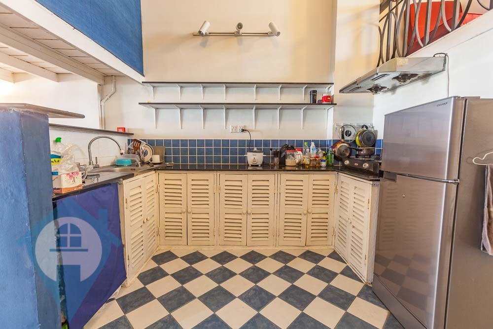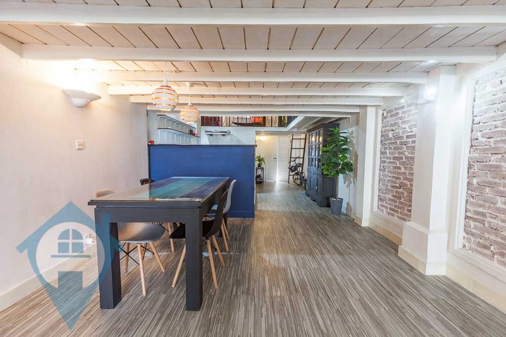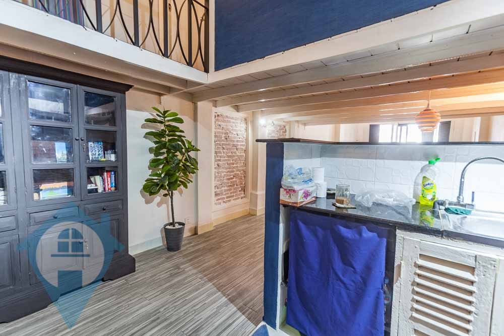 This one bedroom apartment for rent is located on street 130 corner 15 in the Daun Penh district of Phnom Penh. The apartment is accessed via a communal stairwell and is on the 2nd floor. The apartment comes fully furnished and is tastefully decorated throughout with exposed bricks and many or the original colonial features. The property comes with a private balcony and has a well equipped kitchen. This property is walking distance of the riverside area and the French school Lycée français René Descartes de Phnom Penh. Please quote property code : PRE002027