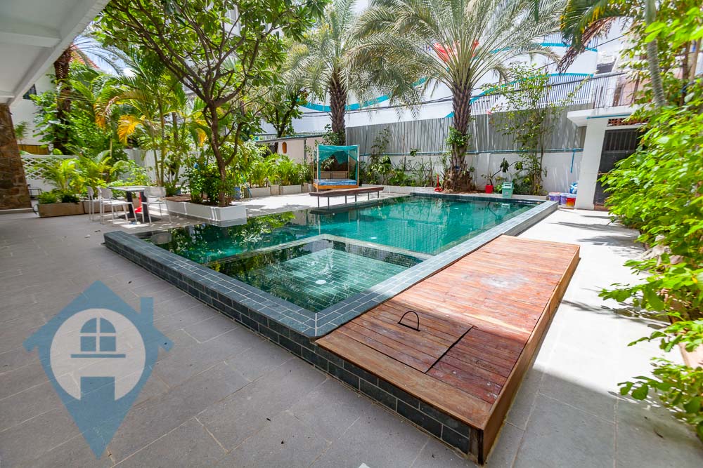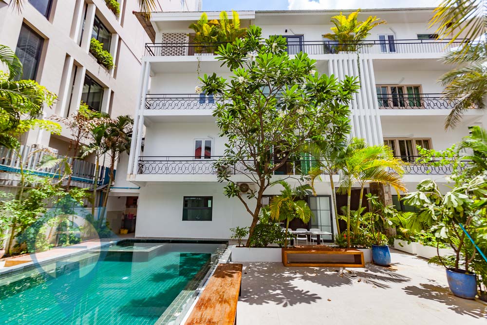 This three bedroom apartment for rent is located in the central district of Tonle Bassac in Phnom Penh. The apartment is set is a shared compound of converted villas which share a swimming pool on the ground floor. The apartment comes with three bedrooms and three bathrooms and is on the 2nd floor and is tastefully decorated throughout in a western style. There is secure parking and security on site. This property is within walking distance of supermarkets, cafes, and is suitable of families who children go to IPSS, CIS and Lycée Français René Descartes (LFRD) Please quote property code : PRE002118
