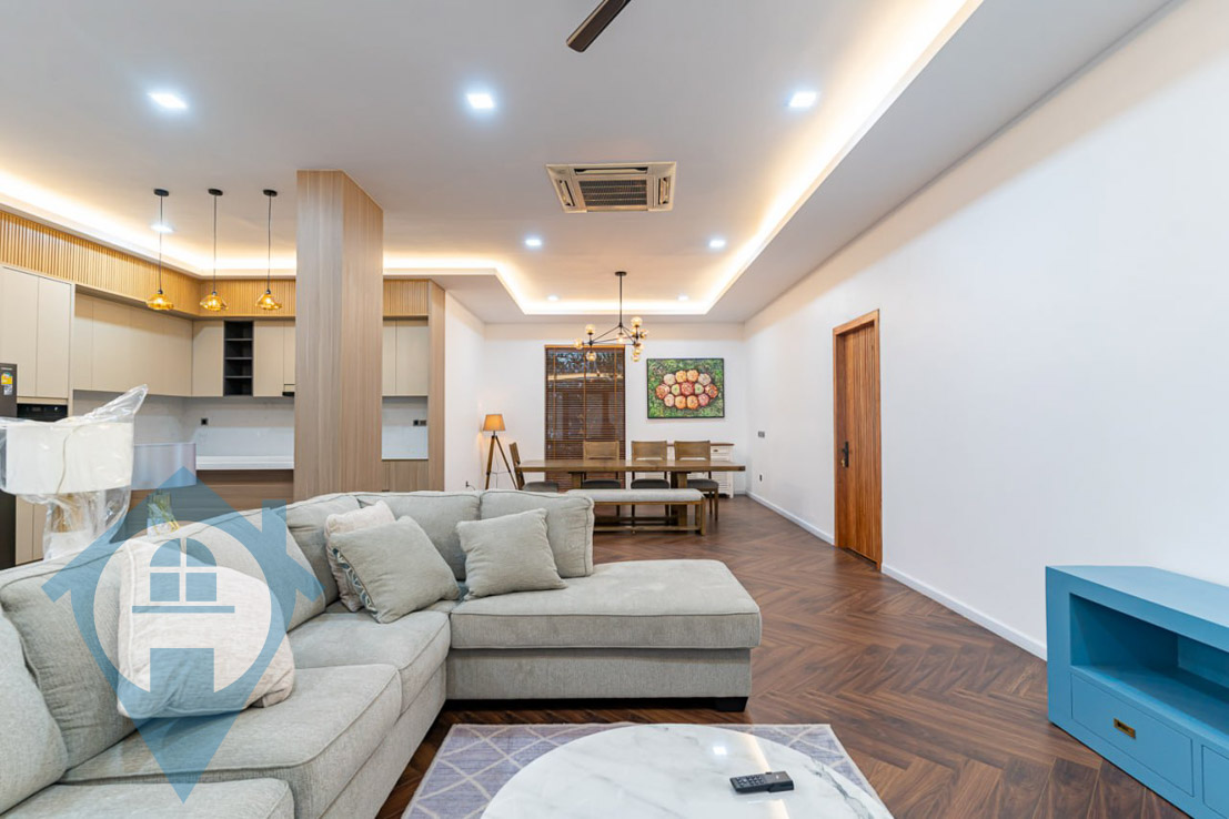 This stunning apartment epitomizes contemporary home design, featuring an open-concept living area that encourages connection among family members and guests while offering sleek functionality in every corner. The kitchen is fully equipped with a two-door refrigerator, an induction cooker, a built-in exhaust, and extensive storage space. Adjacent to the kitchen is a lounge and dining corner that fosters a social atmosphere. Each of the three bedrooms offers conducive lighting, a large bed, a desk, a cabinet, and air conditioning to ensure comfort all day long. The generous amounts of natural light and great ventilation further enhance the living experience, making this property the best choice for convenient urban living. Located just 1 minute from the Royal University of Fine Arts and the Preah Ang Duong Hospital, 3 minutes from the Royal Palace, and 5 minutes from Aeon Mall and BELTEI International University, it is ideally situated. The apartment is fully furnished and available on a 1-year term with a 2-month deposit. It includes 3 bedrooms, 4 bathrooms, and spans 300 square meters. Features include an open living area, a 6-seater dining set, an L-shaped kitchen with an island, an integrated breakfast nook, and a balcony. Additionally, it is located on the 1st floor and comes with 1 car parking space, nighttime security with CCTV, and private stairs and entrance. Please quote property code : PRE002016