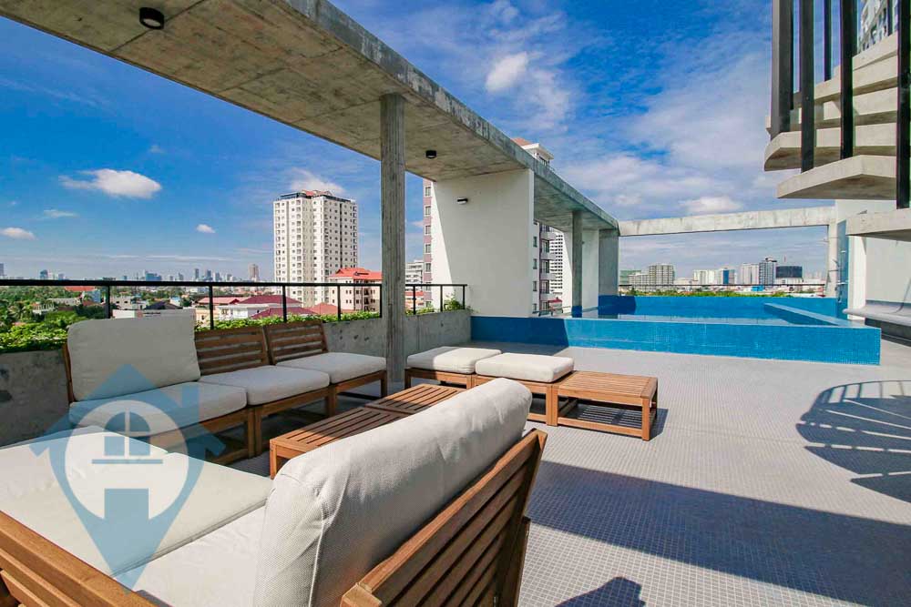 Discover a truly exceptional family-oriented 3-bedroom apartment in Phnom Penh, situated on Chroy Changvar peninsula. This newly-constructed dwelling, only a 15-minute drive from the French Embassy, offers a stunning shared rooftop terrace and a pool with breathtaking city and Mekong River views. Each room is meticulously designed with modern, tasteful furniture, smart lighting, built-in storage, and harmonious materials. The spacious kitchen is equipped with an island, microwave, convection oven, and gas hob, seamlessly connecting with the large open-plan living room and private balcony. The bathrooms, featuring rain showers and naturally ventilated, are beautifully decorated with tranquil blue and grey-toned tiles. The spacious bedrooms come with a private study area, en-suite bathroom, ceiling fan, A/C, and built-in storage. Offering unparalleled views, the shared rooftop features a part-shaded terrace, a built-in pool, and a separate grassed garden. Given the building houses only five units, this apartment is an ideal choice for those seeking space, security, tranquility, and privacy. This exceptional home is equipped with A/C, hot water, new appliances including a fridge, dishwasher, washing machine, flat-screen TVs, microwave oven and offers elevator access to all floors, secure off-street parking, free Wi-Fi, electricity at $0.25/KWh, complimentary water, CCTV in common areas, and on-site maintenance. The communal rooftop terrace and pool are shared with only five other apartments. Step into this luxurious space and see the difference for yourself! Please quote property code : PRE001926