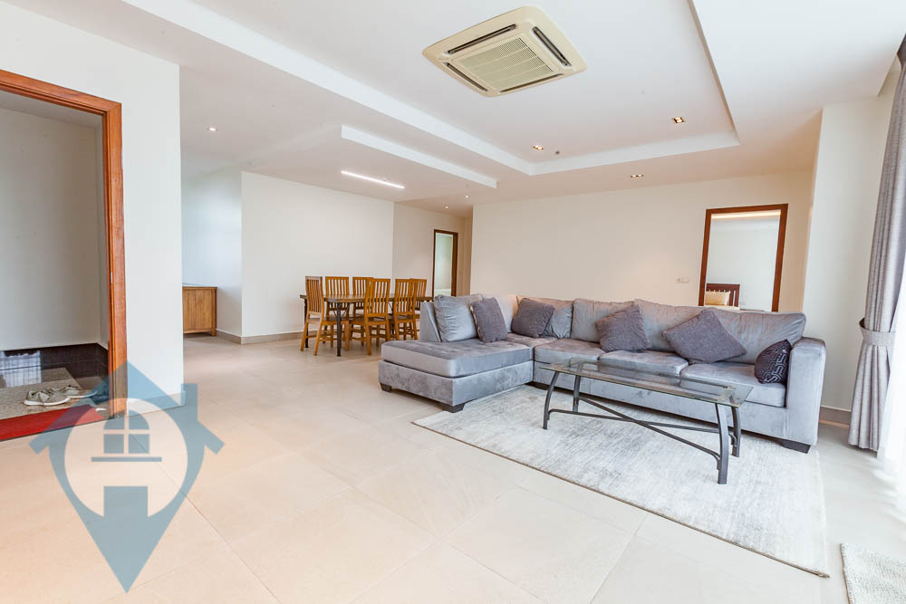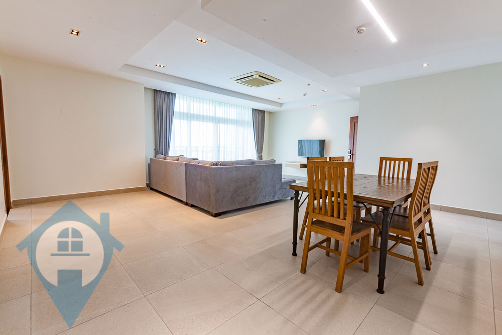 This three bedroom apartment for rent is located in the popular southern district of Tuol Tom Poung in Phnom Penh. The apartment comes fully furnished and fully serviced. This unit comes with three bedrooms and fours bathrooms and a private balcony. The building benefits from a rooftop swimming pool, well equipped gym, rooftop decking area and secure parking for both cars and motos. Please quote property code : PRE002030