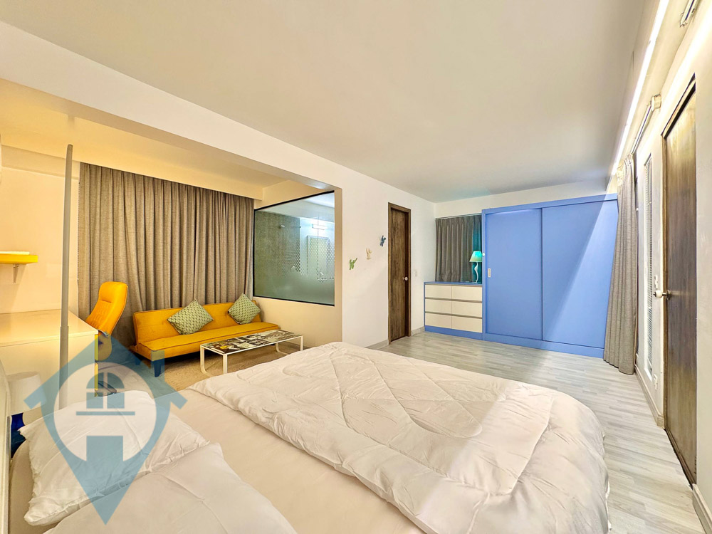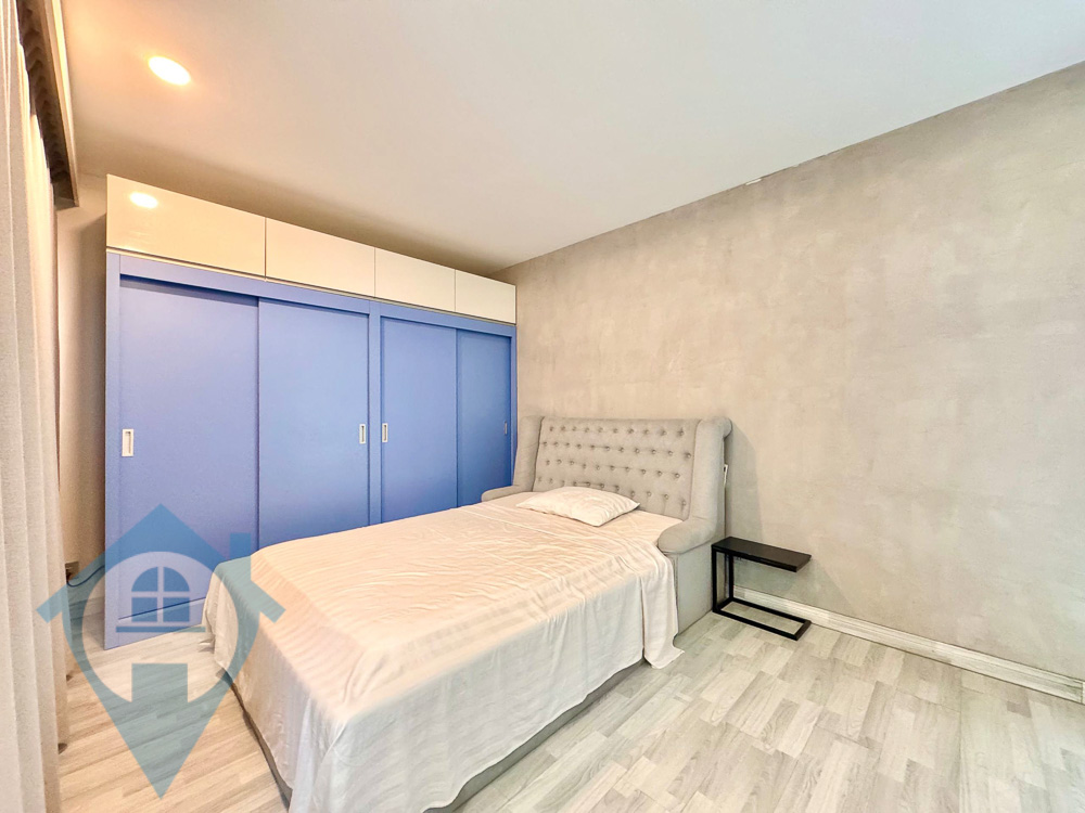 This three-story townhouse for rent offers a distinctive blend of industrial and colonial design, perfectly paired with the vibrant city lifestyle of Phnom Penh. Spanning a land area of 240 sqm, the property features three bedrooms, three bathrooms, and a fully furnished interior designed for comfortable urban living. The ground floor boasts a cozy living area with high ceilings, a spacious dining area, and a separate galley kitchen. Additional conveniences include a designated laundry/utility room and a guest bathroom. Upstairs, the bedrooms are complemented by a mezzanine level that includes a small study hub overlooking the living room. The townhouse also features a balcony, clear garden spaces, and ample motor parking. With open planning, abundant natural light, non-flooding mechanisms, and close proximity to the Riverside and popular establishments, this property is an ideal choice for those seeking to experience the best of Phnom Penh. Please quote property code : PRE002148