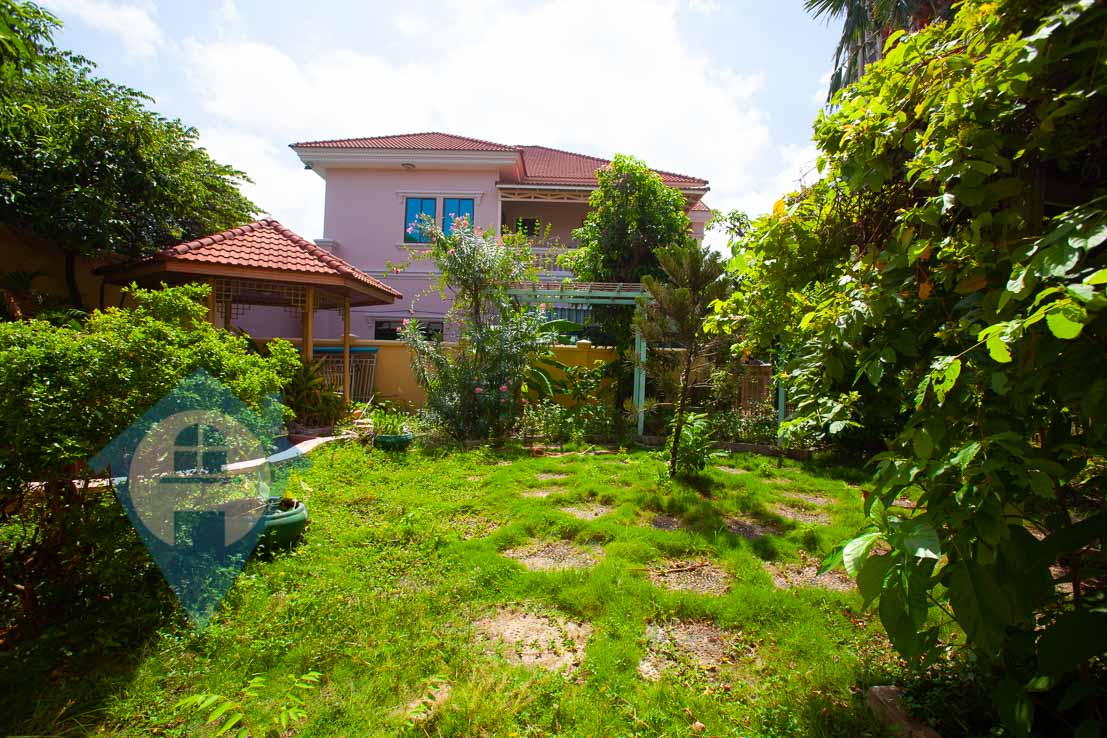 This family sized three bedroom villa is located north of the landmark ISSPP school in Phnom Penh. The property comes with three bedrooms and a separate maids room, plus four bathrooms. The villa comes with a good sized private garden complete with gazebo. This property is within a gated community with 24 hour security. There is secure parking for both cars and motos. Please quote property code : PRE001494