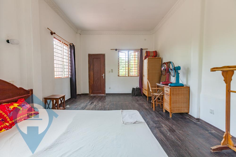 This charming wooden villa, nestled on the outskirts of Cambodia's bustling capital in the serene Kandal Province, offers an authentic countryside living experience. Covering an area of 140 sqm., this home boasts three (3) bedrooms and bathrooms, set within a lush green lawn that features blooming trees, a covered parking area, and a secluded pool which is solar powered, making it perfect for either a vacation retreat or a plush permanent dwelling. The interior is characterized by wooden finishes that create a rustic yet cozy feel, complemented by fully tiled kitchens and bathrooms for modern comfort. Each bedroom is generously sized, providing ample space for family members or guests. Additionally, an area with terracotta tiles next to the garage is ideal for hosting outdoor events, such as barbeques or poolside parties, promising memorable holiday gatherings. Situated in Koh Dach Khsach Kandal, the villa is conveniently located just five (5) minutes away from Wat Krapum Pech and the Koh Dach Primary School. Essential amenities like the Koh Dach Market and Bolinna's Clinic are a mere eight (8) minutes drive, with the Koh Dach Ferry Dock also close by, ensuring easy access to and from the property. Please quote property code : PRE001999