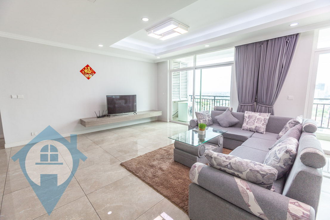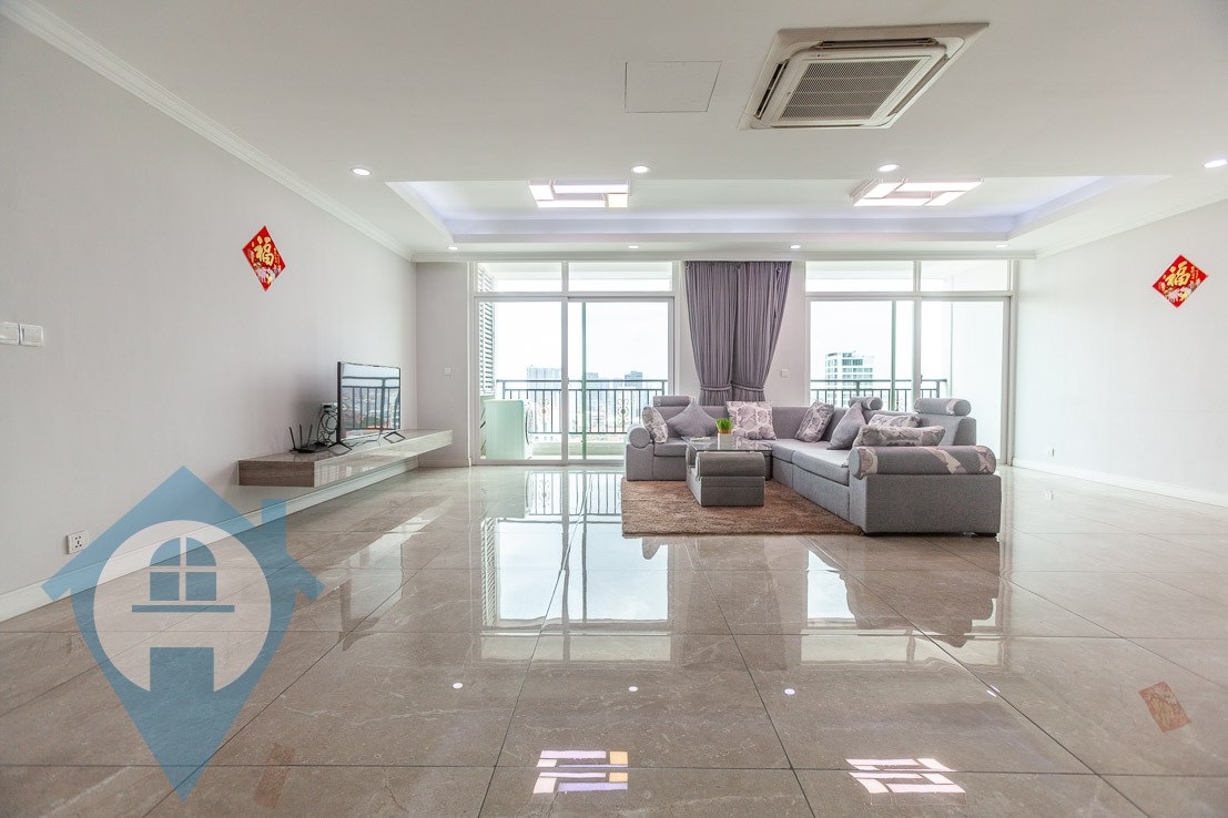 This four bedroom apartment for rent is located in the heart of the popular BKK1 district in central Phnom Penh. The property comes fully serviced and fully furnished and is both bright and airy. There are private balconies with great views over the cityscape. The building benefits from a rooftop swimming pool, gym and cafe / restaurant. There is secure parking for both cars and motos and the building is within easy walking distance of many local amenities. Please quote property code : PRE001650
