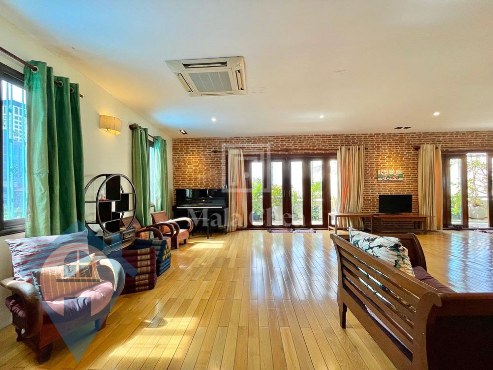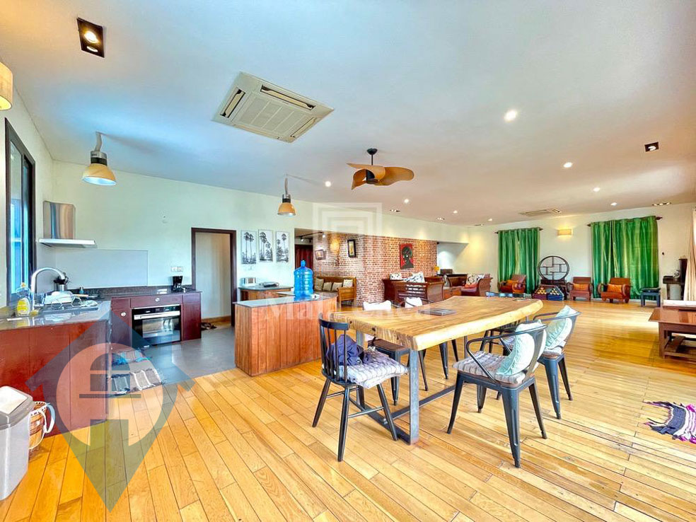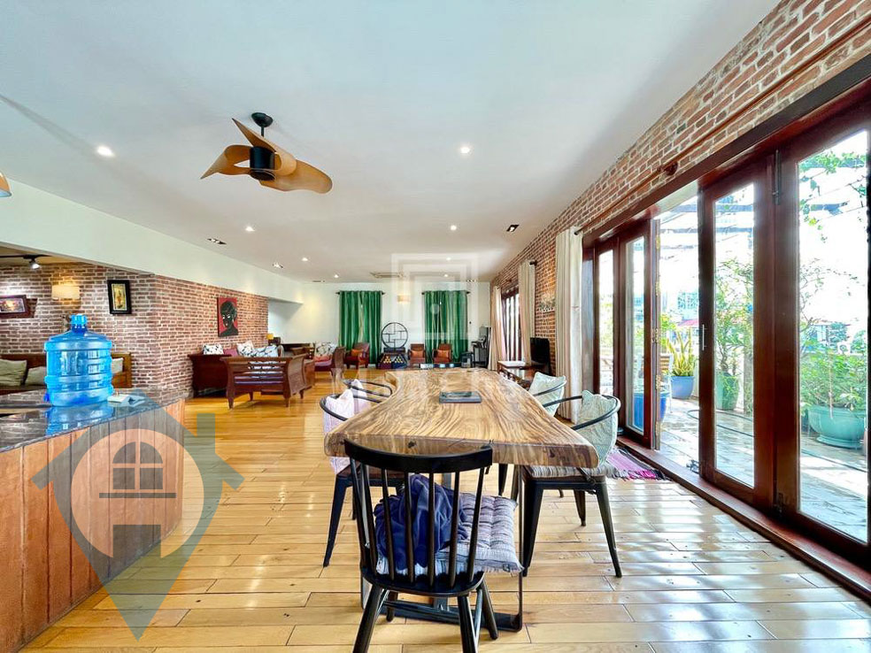 This elegantly renovated apartment combines three flats into one stunning unit located on the 4th floor, encompassing approximately 200 square meters. A delightful balcony offers a perfect spot for home gardening, promoting a serene and relaxing environment, while the standout feature of the household is a private rooftop swimming pool that boasts breathtaking views of the city. The apartment features two rooms on the lower level: a small room ideal for a child or as an office/study space, and a master bedroom complete with an ensuite bathtub. On the upper level, two ensuite bedrooms are similarly sized, with one offering a walk-in shower and the other equipped with a bathtub. All four bedrooms are furnished with cozy beds, desks, and ample storage options. The bathrooms, ranging from glass-enclosed showers to bathtubs, are fitted with both hot and cold water for daily convenience. The living area provides an open, seamless flow between the spacious lounge, additional walking space, and the dining area/kitchen. With central air conditioning and multiple fans, this space is designed to be an airy, light-filled oasis where residents can relax and connect at the end of the day. Conveniently situated in the prime location of Wat Phnom, this apartment is within minutes' walking distance from Brown Cafe 110, just five minutes from Exchange Square and Vattanac Capital & LFRD, a seven-minute walk to Phsar Chas, and a four-minute ride to Central Market. Please quote property code : PRE002048