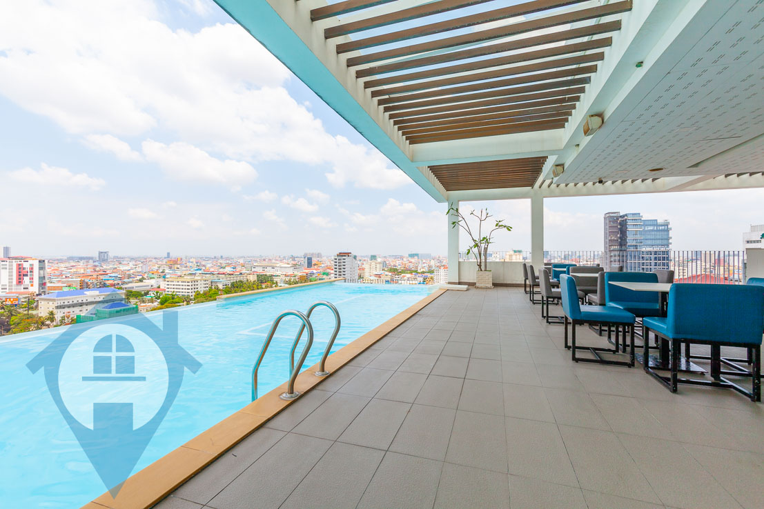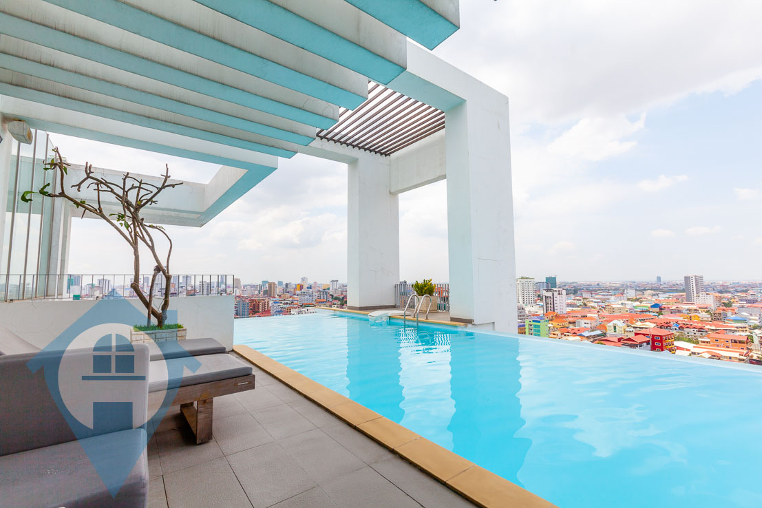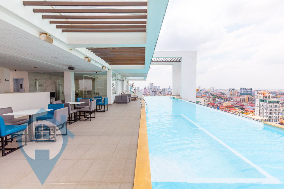 This spacious four bedroom penthouse for rent is located close to the landmark Russian market in the south of the capital Phnom Penh. The penthouse comes with four good sized bedrooms and three bathrooms. The property has a double height ceiling in the loving area and the duplex comes with several private balconies. The building benefits from a rooftop swimming pool, cocktail bar, gym and spa complex. There is secure parking for both cars and motos and 24 hour security. Please quote property code : PRE001649
