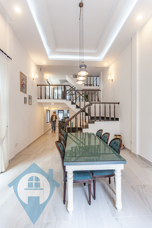 This 4-bedroom townhouse in Boeung Trabek, situated at the heart of Phnom Penh, offers an ideal home for a family. Superbly designed with comfort and entertaining in mind, it features a spacious western kitchen, large dining and relaxing areas on multiple levels. The property also boasts secure off-street parking for 2 cars, air-conditioning throughout and full furniture. Shopping, cafes and supermarkets are all within easy reach of the property, while many international schools can also be found nearby. This is an ideal family home in a central location with many excellent amenities. The land is 5m x 25m and is hard title. Please quote property code : PRE001844