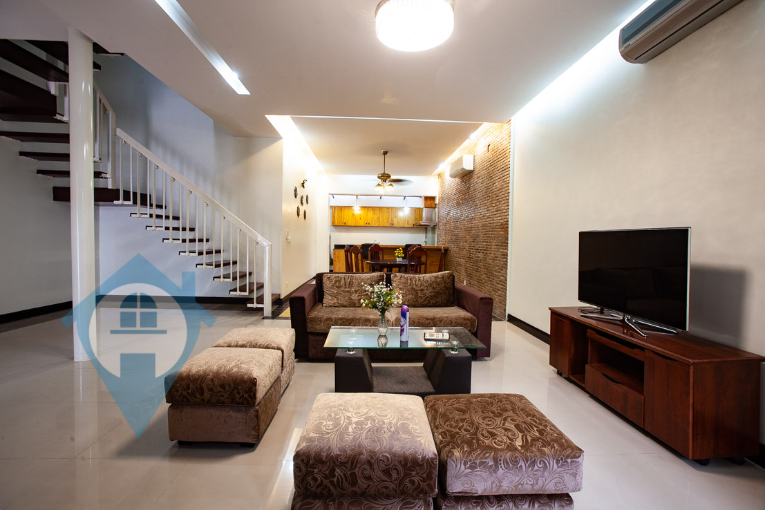 This four bedroom townhouse for rent is located beside the landmark Aeon mall in Tonle Bassac in central Phnom Penh. The property comes with three good sized bedrooms upstairs and a 4th bedroom downstairs. The villa comes with a modern fitted kitchen leading into an open plan living / dining area. The property has a spacious private courtyard with secure parking for a car. This gated community benefits from a swimming pool, gym, spa, supermarket, 24 security and is popular with expats. Please quote property code : PRE001522