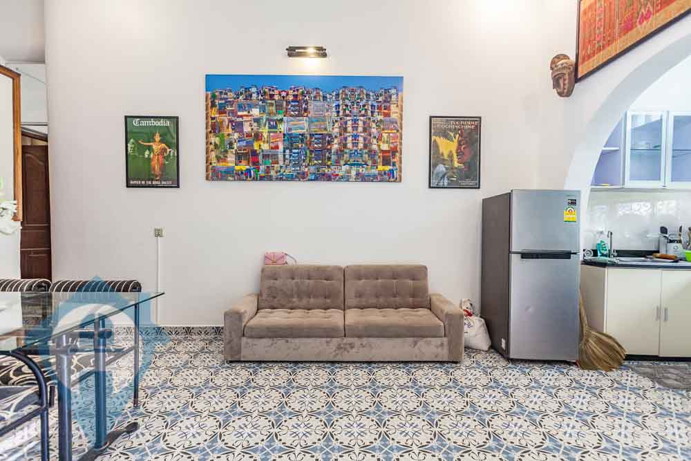 This four bedroom colonial style townhouse for rent is located in the Daun Penh area close to the famous National Museum. The property retains its colonial charm yet benefits from a modern kitchen and bathrooms. This townhouse comes with four bedrooms and with lots of natural light has a bright and airy feel. There is a open plan kitchen and dinning area leading to separate living room to the rear. The master room has a private balcony and there is also a secure terrace on-top. The property is located in a private lane with three other houses, parking for cars and motos on site. Please Quote Property Code : PRE000698