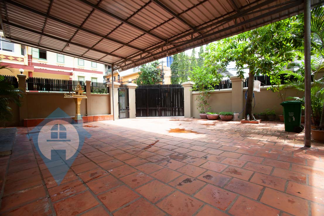 This four bedroom villa for rent is located in the popular Tonle Bassac district in central Phnom Penh. The property comes with four bedrooms and six bathrooms. There is a spacious courtyard to the front of the villa and a good sized terrace on the first floor. The villa has secure parking for several cars. Please quote property code : PRE001554