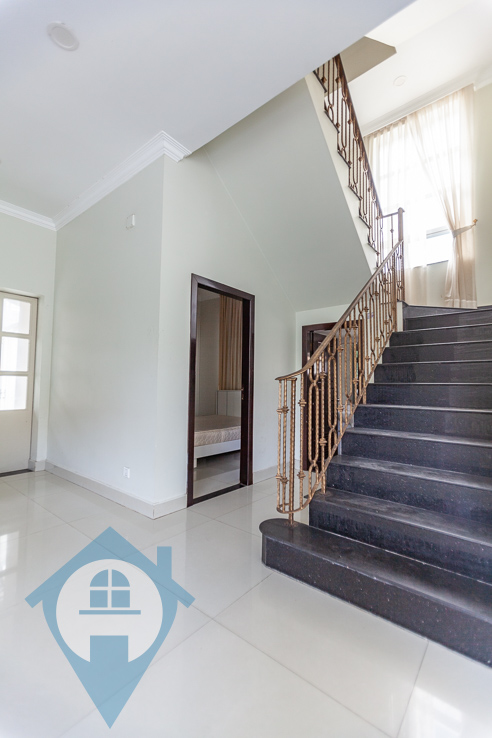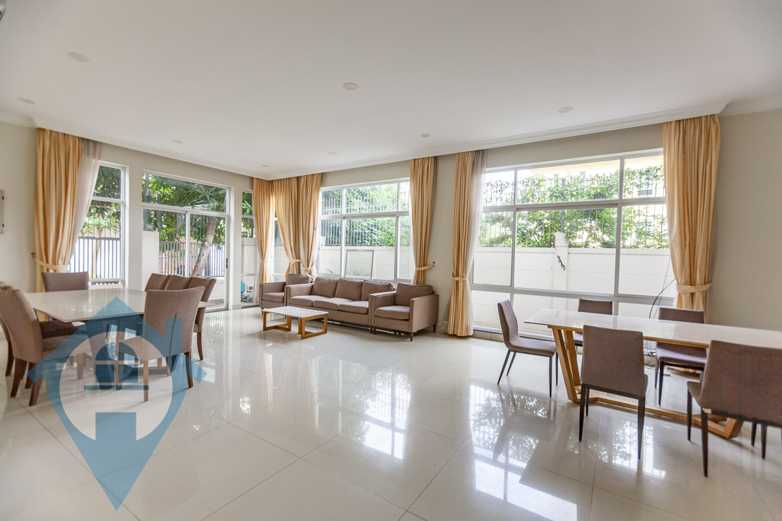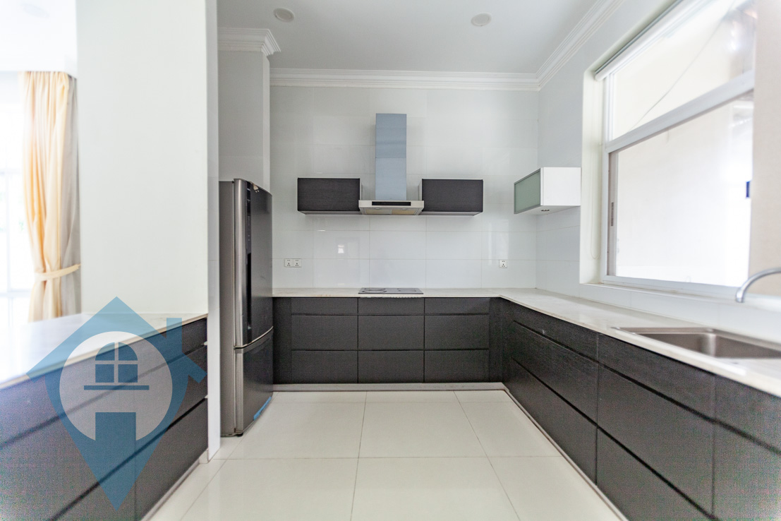 This spacious five bedroom villa for rent is located on the central island of Koh Pich in the district of Tonle Bassac in Phnom Penh. The villa comes with five bedrooms and five bathrooms and is fully furnished. The property is finished in a western style complete with a modern fitted kitchen and modern bathrooms. The villa has several private terraces and balconies and a large private secure outside area capable of parking several cars and motos. The villa is within a secure compound with 24 hour security and wide streets. Please quote property code : PRE001746