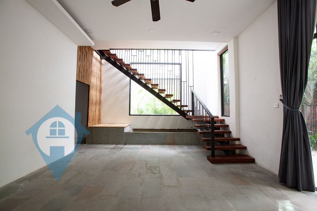 This large family sized six bedroom villa for rent is located beside the landmark Aeon mall in Tonle Bassac in Phnom Penh. The villa comes with a spacious open plan loving and dining area leading onto a modern fixed kitchen. The upstairs has six bedrooms four of which have ensuites. The rooftop of the villa is a vast private terrace complete with bar and bathroom. The villa shared a swimming pool with eight apartments on the same compound and there is secure parking for cars and motos plus 24 hour security. Please quote property code : PRE001514