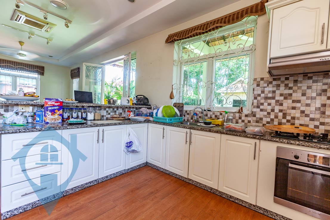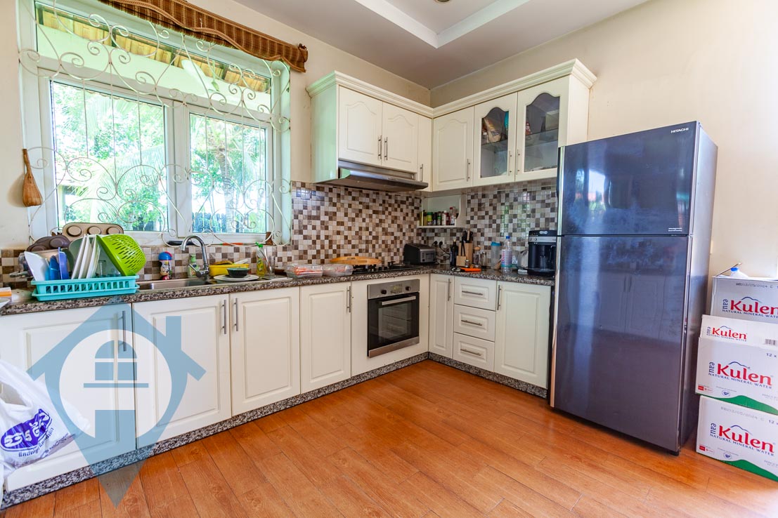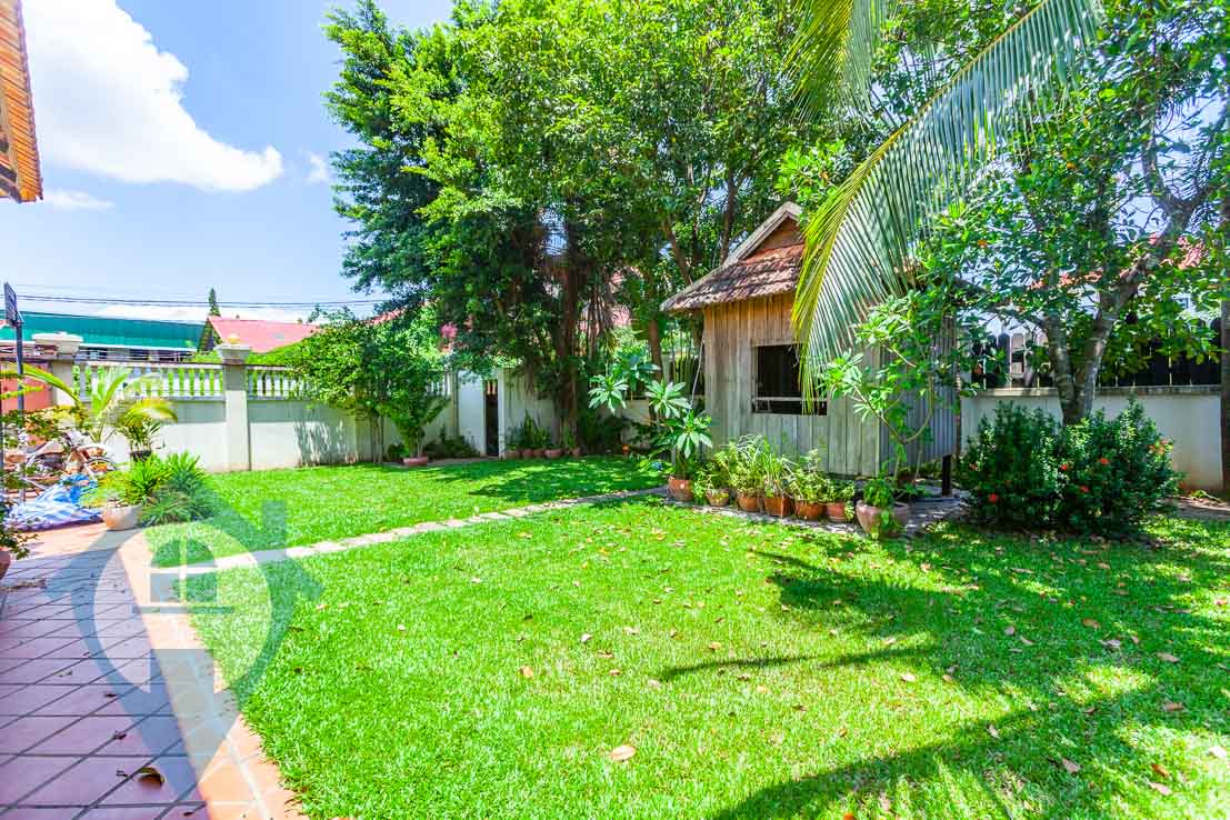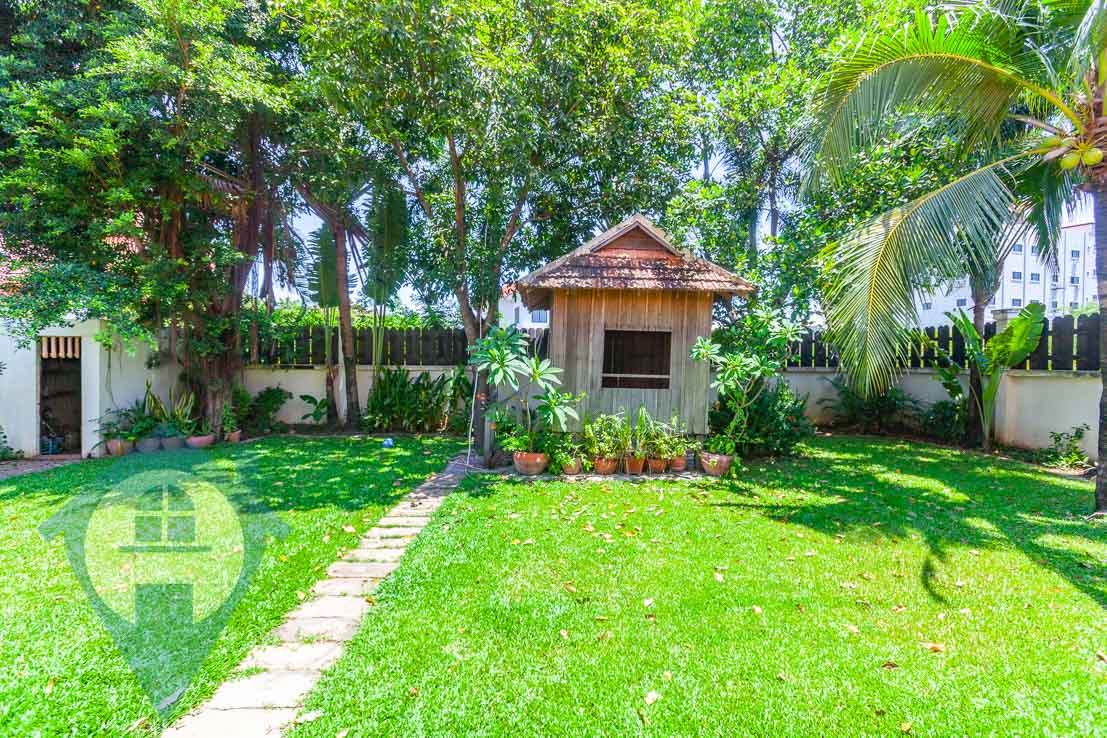 This eight bedroom villa for rent is located in the Prek Pra district of Phnom Penh. The villa comes with eight bathrooms and seven bedrooms spread between the main villa and a separate apartment connected to it with a self contained kitchen and villa area. The villa comes with a spacious kitchen / living and dining area with open access to the terrace and gardens that surround the property. The site is secure and spacious extending to over 800 sqm in size. There is a private swimming pool and wooden garden house and a mature garden perfect for a family to enjoy. It would take around 20 minutes to travel to ISPP and the city centre making it a great choice for a family who want space and quiet but still want to be close to the city. The photos taken on the listing were done as the current tenants were packing to leave. Please quote property code : PRE001726