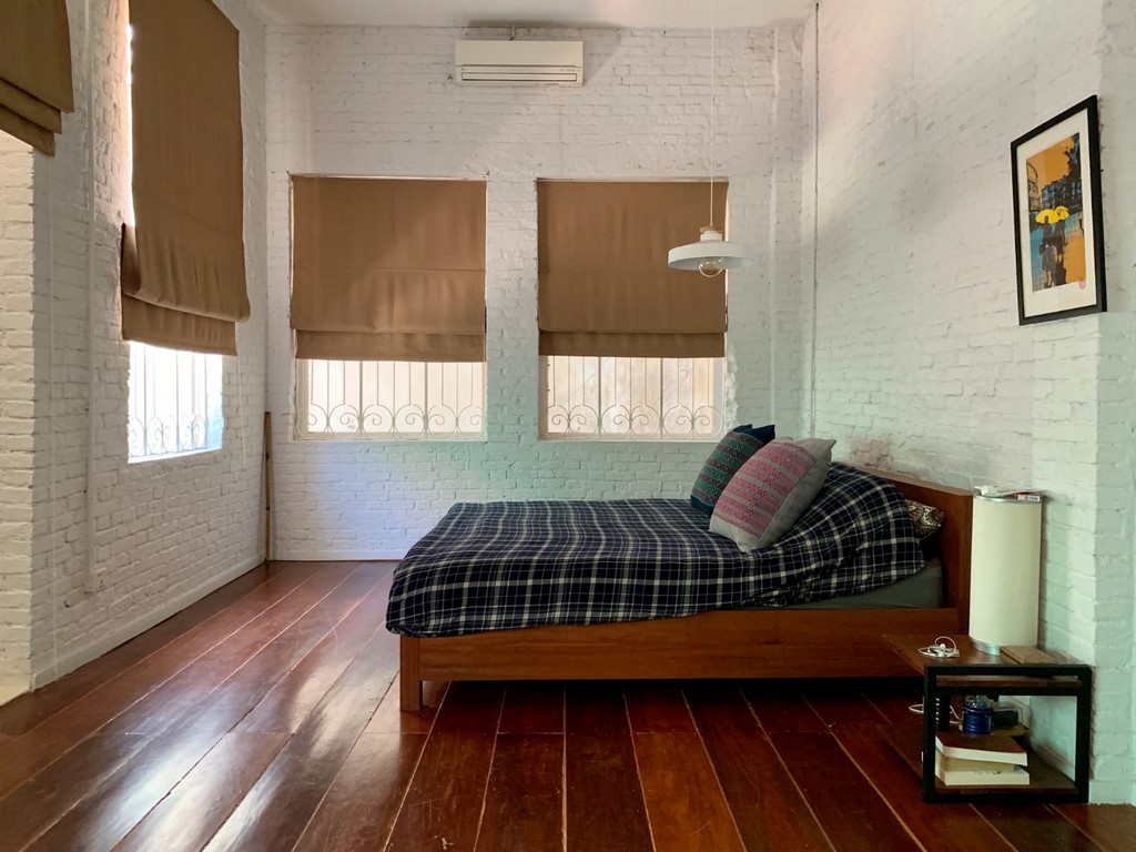 This is a heritage building from colonial era, one of the few remaining in Phnom penh Clean, safe, private entry stairway shared only with one neighbor First floor : full floor apartment of 184 sqm, 2 large bedrooms, huge living/dining area, an open design kitchen, high windows on three sides of the apartment and high ceiling of 3.50m Please mention code N° 057 Contact by email and text: English or French Contact by phone : khmer