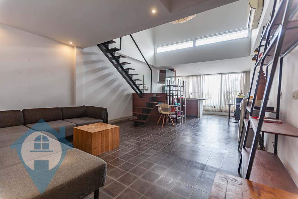 This avant garde two bedroom apartment for rent is located close to the iconic Central Market in Phnom Penh. The apartment is a duplex over the 3rd and 4th floor of the building with two good sized bedrooms and two bathrooms. The apartment has a modern design and lots of natural light. Communal parking for motos is available close by. Please quote property code : PRE001244