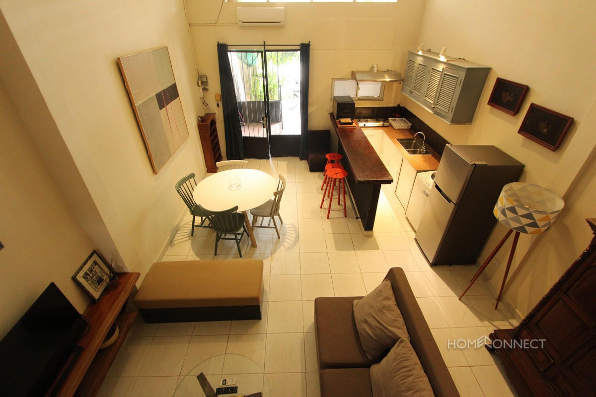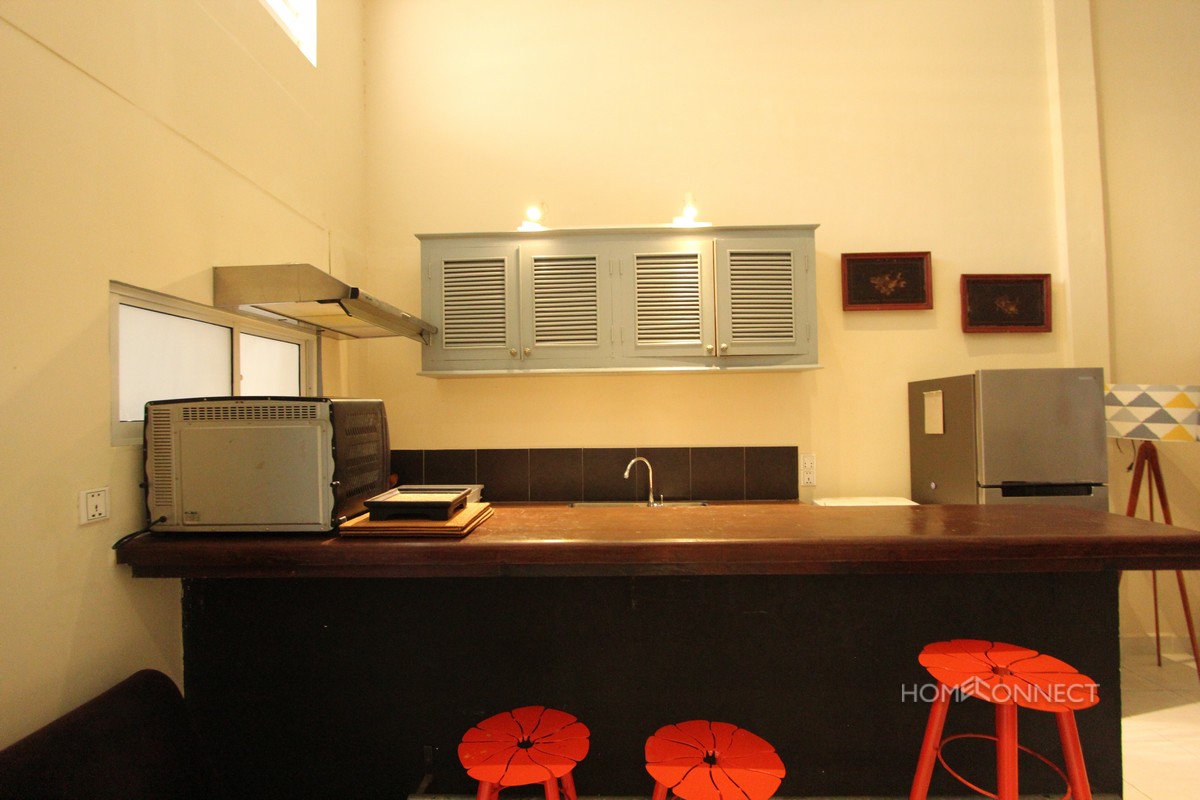 This avant garde two bedroom apartment for rent is located within close to the landmark royal palace in the north of Phnom Penh. The property comes fully furnished and equipped and has been stylishly finished. There is a private outdoor area complete with table and chairs to allow for outdoor living and parking for motos. This area is very popular with expats due to its central location so if your looking for an alternative to modern condo this property is an excellent choice. Please Quote Property Code : PRE001008