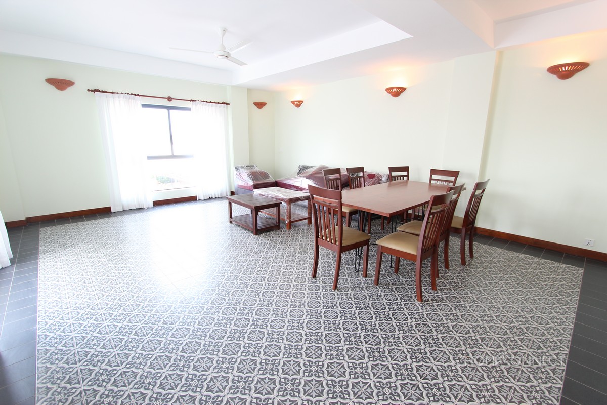 This modern three bedroom apartment for rent located close to the landmark Aeon Mall in the heart of Phnom Penh offers an alternative to the modern condo. The interior design is both modern with a colonial twist and the kitchen and bathrooms are in keeping with this design. The building has secure parking, 24 hour security, elevator and a central pool garden area to enjoy the outdoor life. This building is fully serviced. Please Quote Property Code : PRE000728