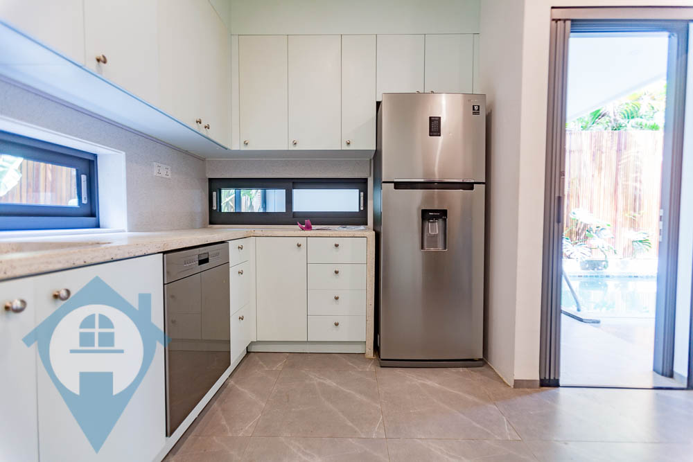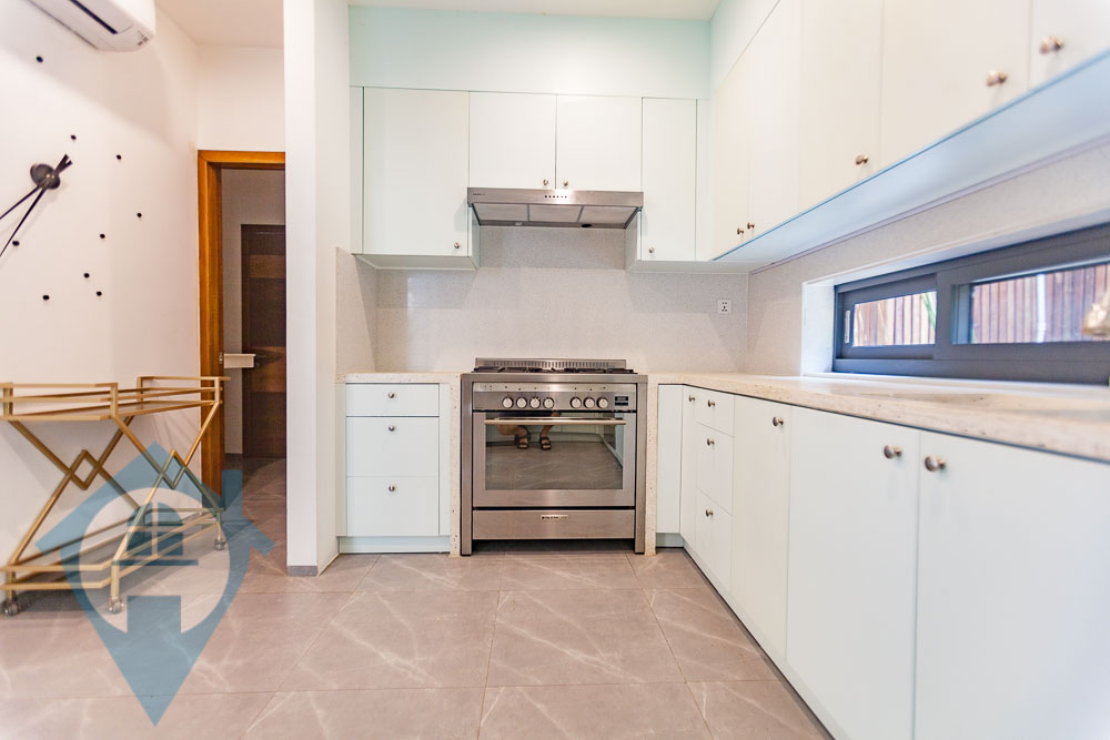 This beautiful four bedroom villa for rent is located on a quiet residential street in the central district of Tonle Bassac in Phnom Penh. The villa comes with four bedrooms and five bathrooms. The villa is spread over three floors and comes with a spacious rooftop. There is a ground floor private swimming pool leading onto a bright and airy living / dining room. There are an additional two living rooms on the higher floors and various balcony's. There is secure parking for two cars and several motos. This villa is moments from BKK1 / Aeon mall and close to many local amenities. Please quote property code : PRE001827