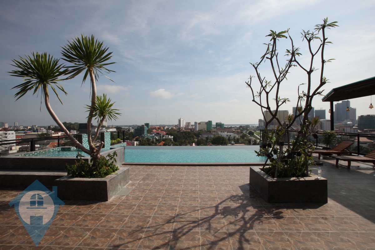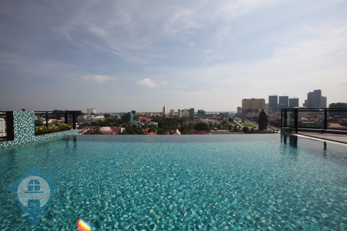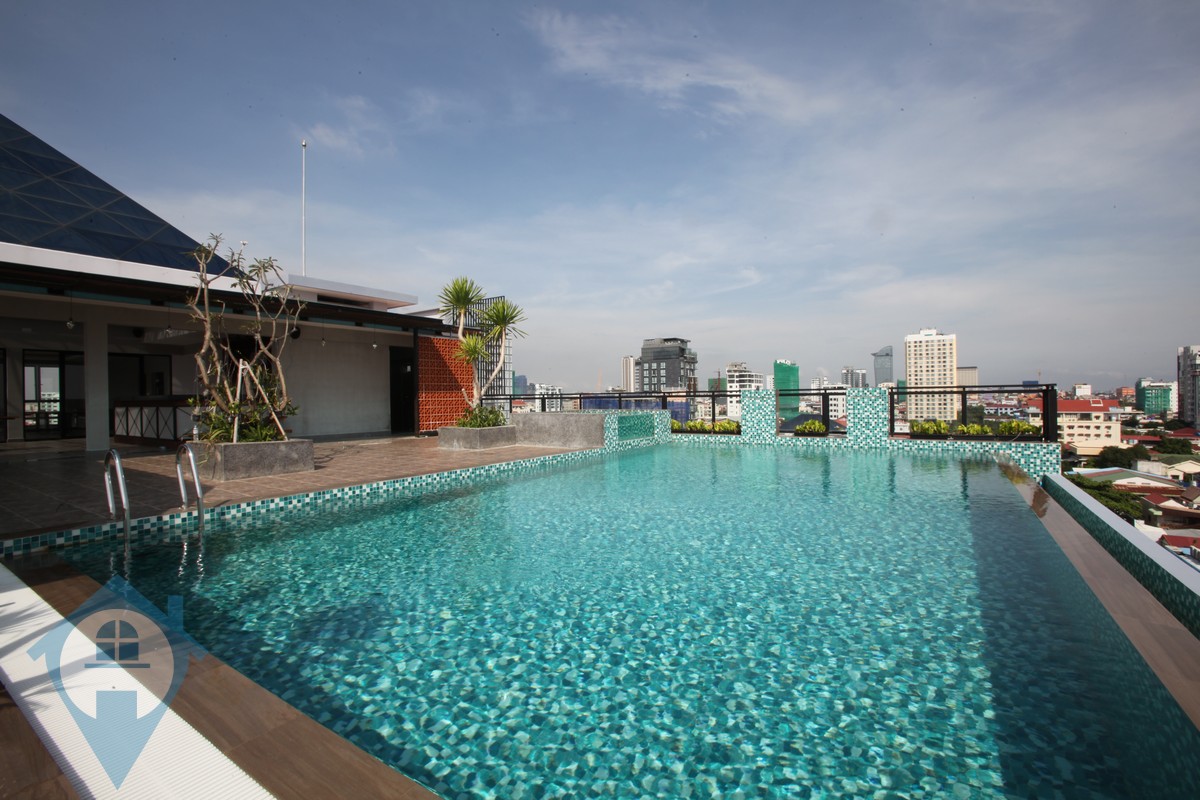 This bright modern style apartment is located within walking distance of the famous BKK1 district in the heart of the capital Phnom Penh. The apartment is bright and has great views over the cityscape. The building comes with 24 hour security, secure parking, rooftop swimming pool, gym and onsite management team. The units are fully serviced and equipped and the building is within walking distance of many local amenities. Please quote property code : PRE001078