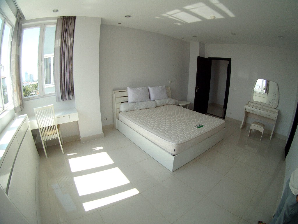 5 mn from wat phnom, good location:quiet and a suitable decor Great new building: On 4th floor (with elevator), overlooking the mekon river, furnished apartment with 2 bedrooms, 2 bathrooms, large closet in each bedroom, nice living room with all modern facilities, balconies, equipped kitchen (gas stove, oven, fridge and freezer, kitchen extractor, washing machine, 2 flat screen tv) (Include security 24 hours a day, elevator, swimming pool, fitness, car park, tv cable) Electricity : 0.25$ per kw Please mention code 295