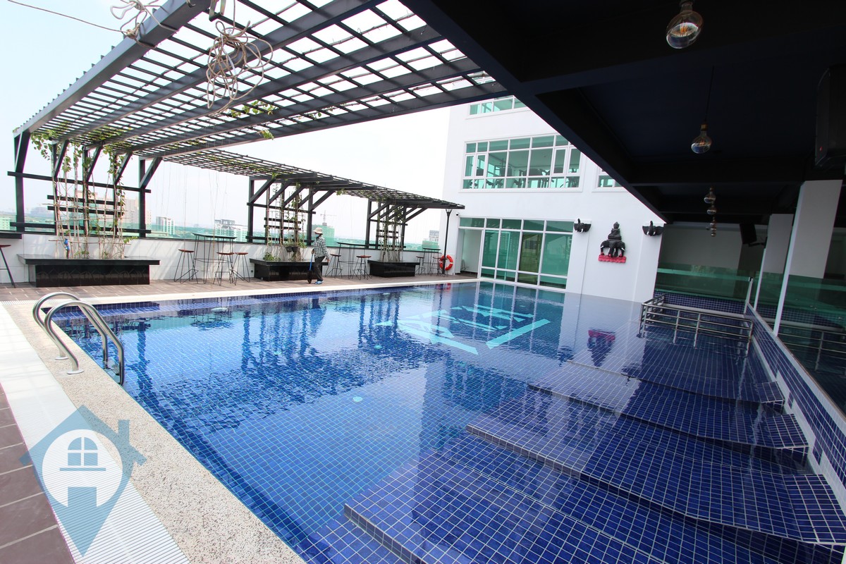 This modern city centre one bedroom apartment for rent is located in the heart of the capital Phnom Penh. The unit is bright and light and is furnished in modern matching furniture. The building comes with a rooftop swimming pool, gym, 24 hour security and secure parking. The apartment includes internet, cable TV and cleaning in the rent. Local shops are within walking distance and its located in a expat popular area. Please quote property code : PRE001082