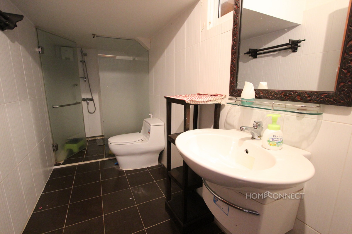 This one bedroom apartment is located in the very popular BKK1 district, close to the restaurants and cafes of that area. The apartment features a open plan living area with a attached galley style kitchen. The apartment is tastefully furnished with antique furnishings. To the front of the property is a bedroom which opens out to a sizeable balcony that affords views of the neighbourhood. Property Code : PRE000607