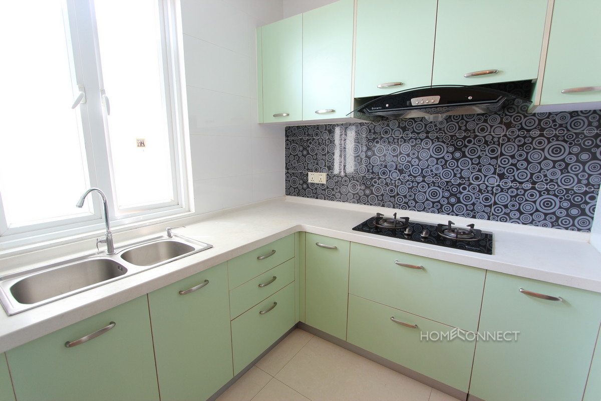 This two bedroom apartment is located on a quiet street in the southern district of Toul Tom Poung, close to the Russian Market. It features a open plan living/dining area with a small kitchen attached. There is a sizeable balcony off the main living area and two separate bedrooms, one of which comes complete with an ensuite. The apartment has secure parking downstairs and 24-hour security. Property Code : PC000271