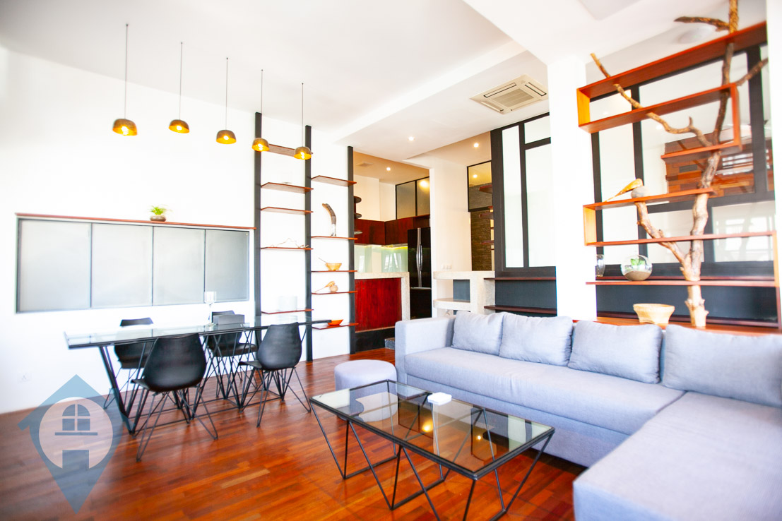 This contemporary one bedroom apartment for rent is located close to the landmark Central Market in Phnom Penh. The building has a secure entrance straight from the street and is both clean and bright. The apartment benefits from being furnished in a western style and is spacious and bright and airy. There is a large private terrace with views towards Wat Phnom. This apartment is on the 3rd floor. Please quote property code : PRE001291